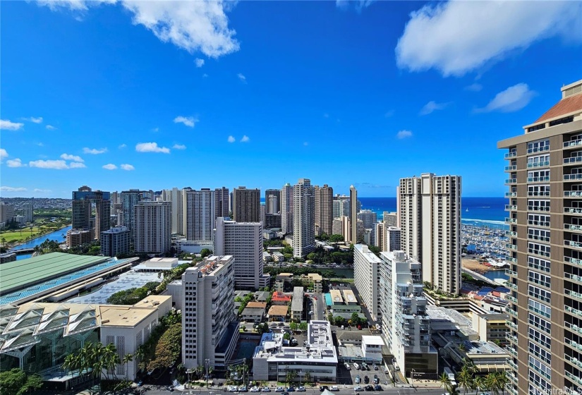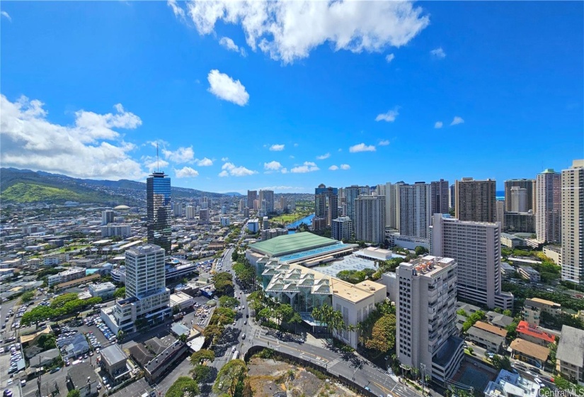 Welcome to the urban oasis in the heart of Honolulu! This stunning 2-bedroom, 2-bath residence on a high floor offers a perfect blend of luxury and convenience. Enjoy panoramic vistas from the mountains and golf course to the canal and the Pacific blue ocean! The modern corner residence features floor to ceiling windows in the living room, open lanai, split AC system in each room, ample storage and closet space, in-suite washer/dryer, and two assigned covered parking stalls! Pet friendly condominium is conveniently located in close proximity to Oahu’s largest shopping mall, beach park, banks, supermarkets, and local favorite eateries and more! Experience the best of city living with breathtaking views. Schedule your private showing today!