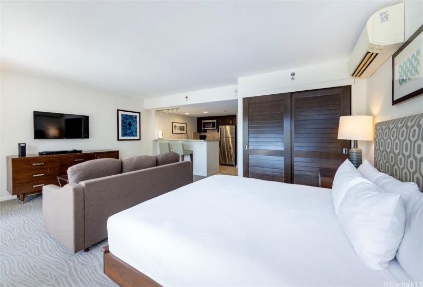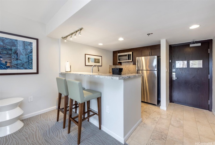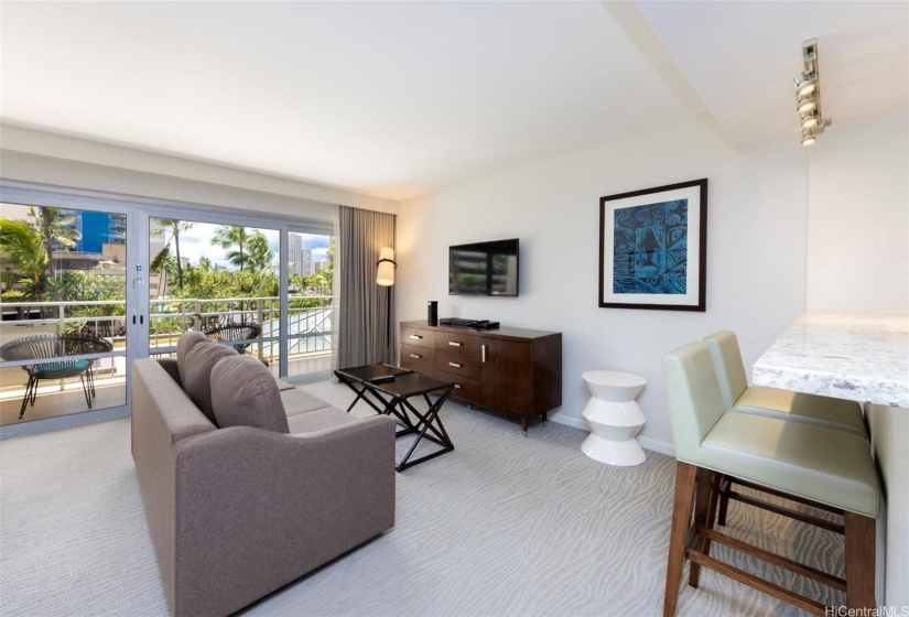 Situated at the entrance of Waikiki in the iconic Ilikai Hotel & Luxury Suites, this studio + 1 bathroom residence on the 2nd floor is one of a handful of units to feature a full renovation and furniture package in 2016.The unit is in the hotel rental pool under Ilikai Hotel & Luxury Suites. This unit is one of 39 units on the 2nd floor remodeled by the developer in 2016. Dressed in an island-modern design, this well-appointed resort destination features an upgraded kitchen with granite countertops and wood cabinetry, a stylish full bathroom with a designer vanity, and an open-concept main living area that opens up to a large lanai peering out toward treetop and Waikiki vistas. Ilikai is a well-established hotel with high occupancy, stable performance, and is coveted among investors. This superb location puts you just across the street from Ilikai Marina, Hilton’s iconic beach lagoon, & blocks from Ala Moana Center, all-things Waikiki, beaches, water sports, dining, shopping, & entertainment, with additional shops & restaurants located on property. Don’t miss this rarely available slice of paradise at the renowned Ilikai