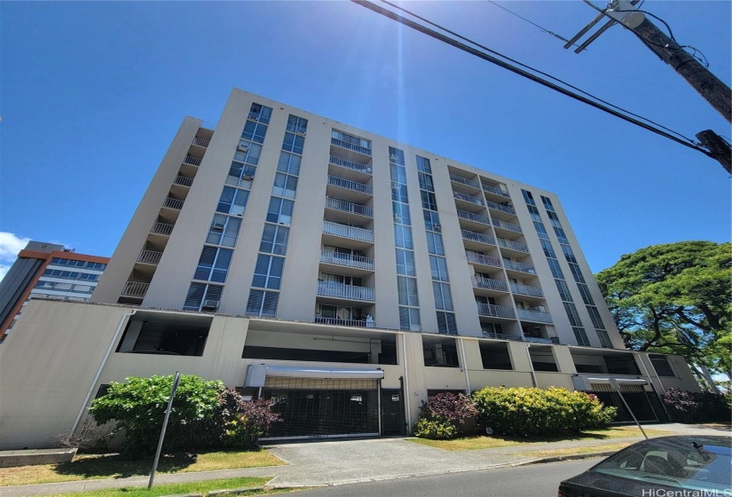 Bright 2 bedroom 1 bath condo unit on cool and quiet side of the Jason Apts with mountain views! Conveniently located near Kapiolani Hospital, Shriners, Maryknoll and Punahou high schools. This apartment has full sized washer and dryer set, upgraded kitchen and bath, window air conditioner in living room, 1 covered, full sized, secured parking stall. Popcorn ceiling material removed. Apartment in great condition but sold As Is.