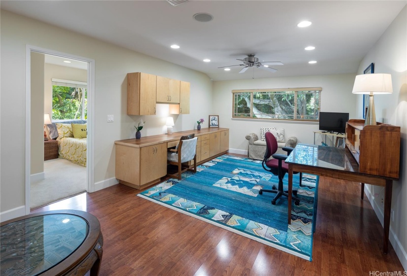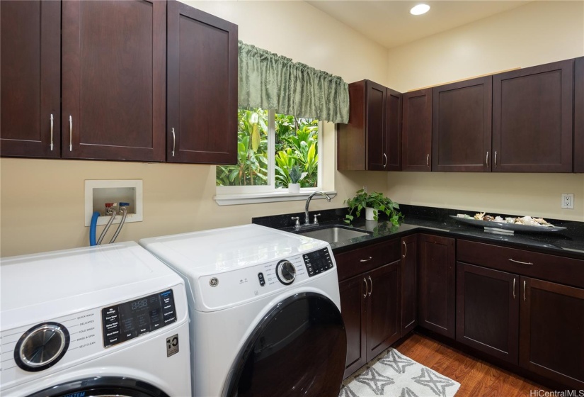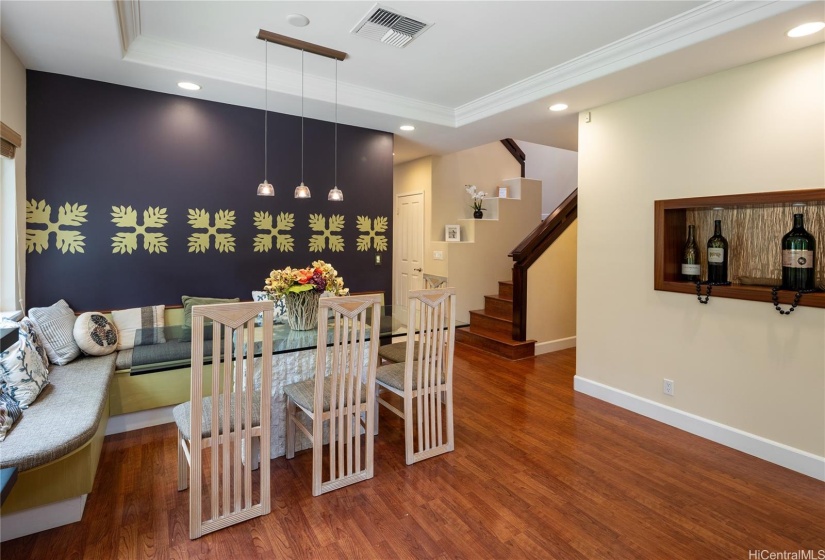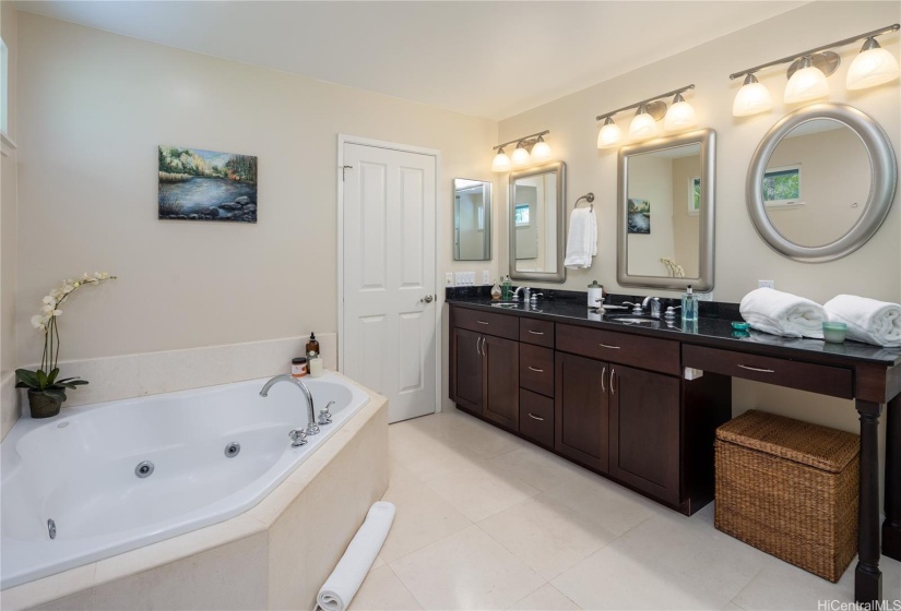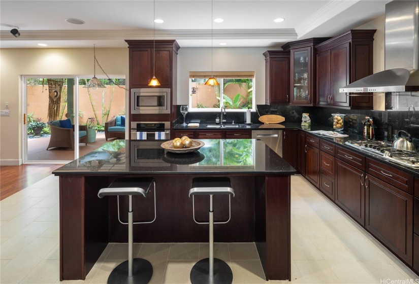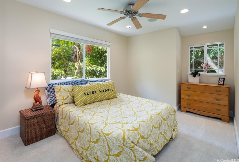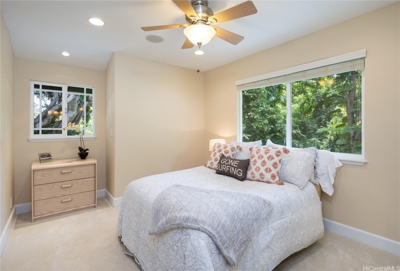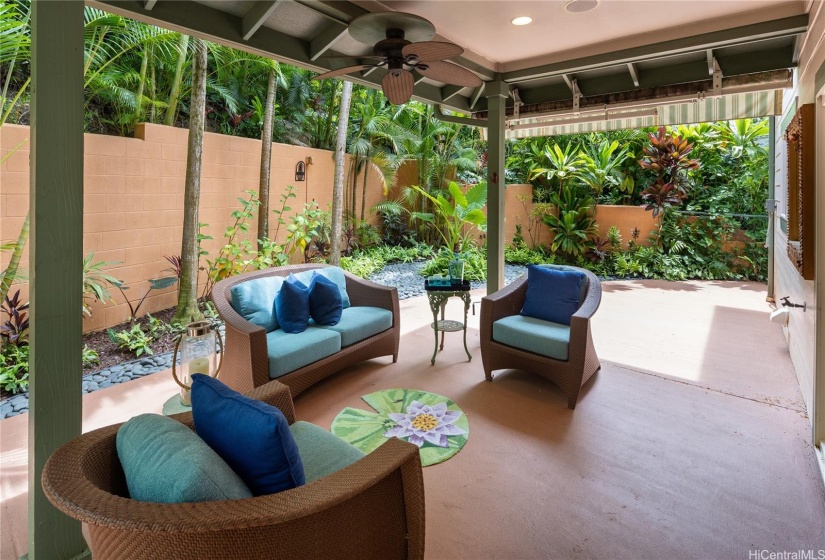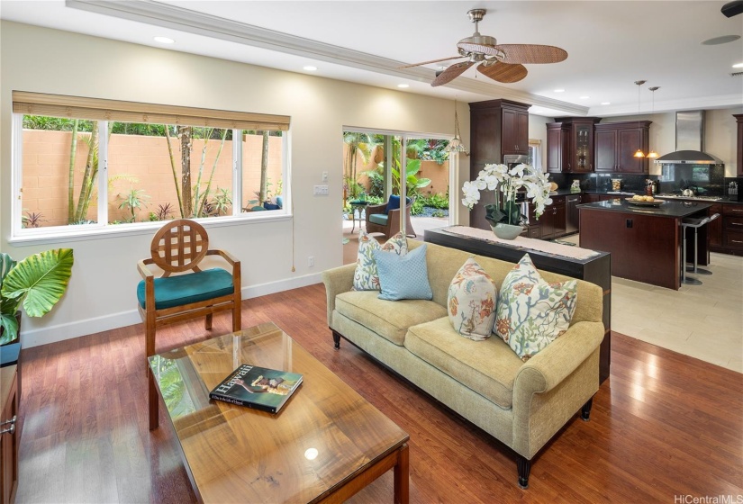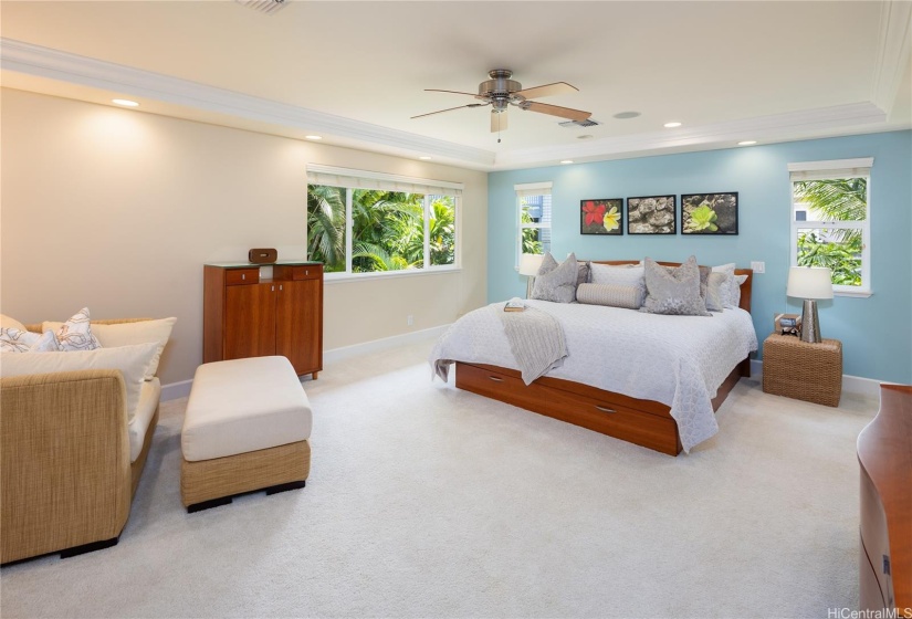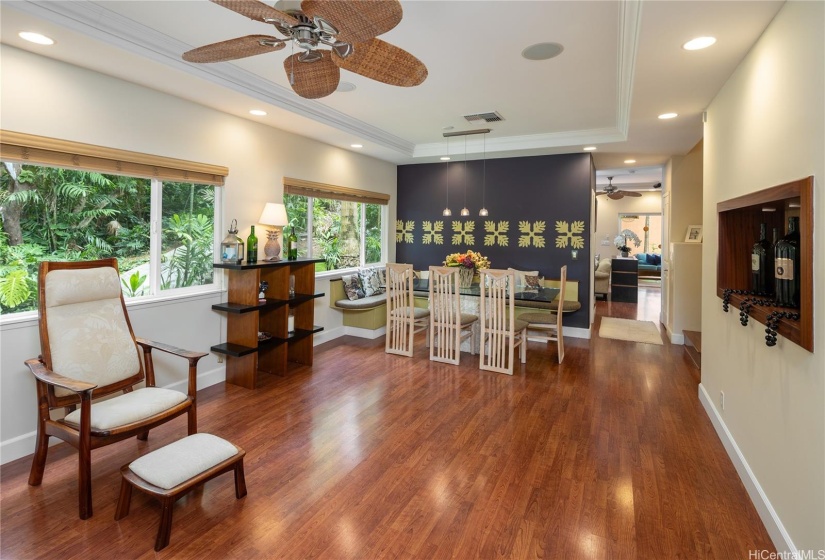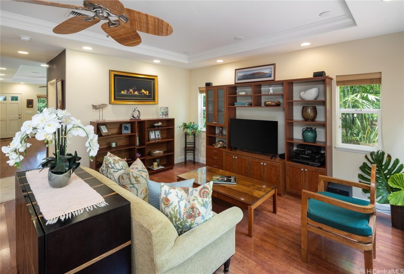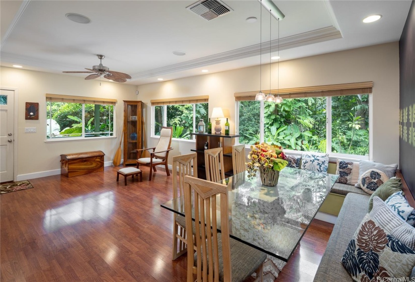 Escape to your serene oasis! Surrounded by lush tropical landscaping, this two-story, four-bedroom residence exudes tranquility and privacy. The private grounds include a large banyan tree, a variety of mature trees, and a wide array of tropical flowers and plants. The architectural floorplan of the property works well for entertaining on the main level and providing privacy for the homeowners on the second story. The classic front entry porch offers a sense of arrival, opening to the main living and dining areas, a guest half bathroom, and a casual living area adjoining the large chef’s kitchen, which flows to the outside covered lanai. A flex space, perfect for a wine room or large pantry, laundry room, mud room, and a two-car garage with storage complete the lower level. The second level includes a large living/office area, the primary suite, three bedrooms, and two baths. The primary bedroom suite is impressively large, with a spacious walk-in closet and a spa-like bathroom. The property’s prime location between Kaneohe and Kailua defines convenience with easy access to three main freeways, schools, shopping, restaurants, and outdoor activities.