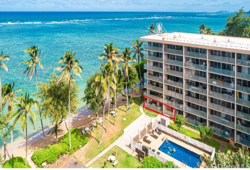 Discover the ultimate beachfront living with this rare 2-bedroom condo in beautiful Punaluu, one of only two in the building and priced at half the cost of other similar Oahu beachfront properties. Completely renovated from the studs, this move-in-ready retreat features two private balconies with direct views of the sparkling blue ocean, offering stunning sunrises and cool breezes from your living room and lanais. Enjoy a host of amenities including a pool, beach access, BBQ area, community laundry, and secured entry. Set on a secluded white sandy beach, this oceanfront gem epitomizes Hawaii’s charm, making every day feel like a vacation and providing a perfect year-round sanctuary.