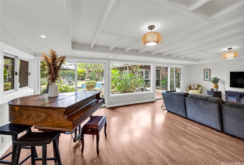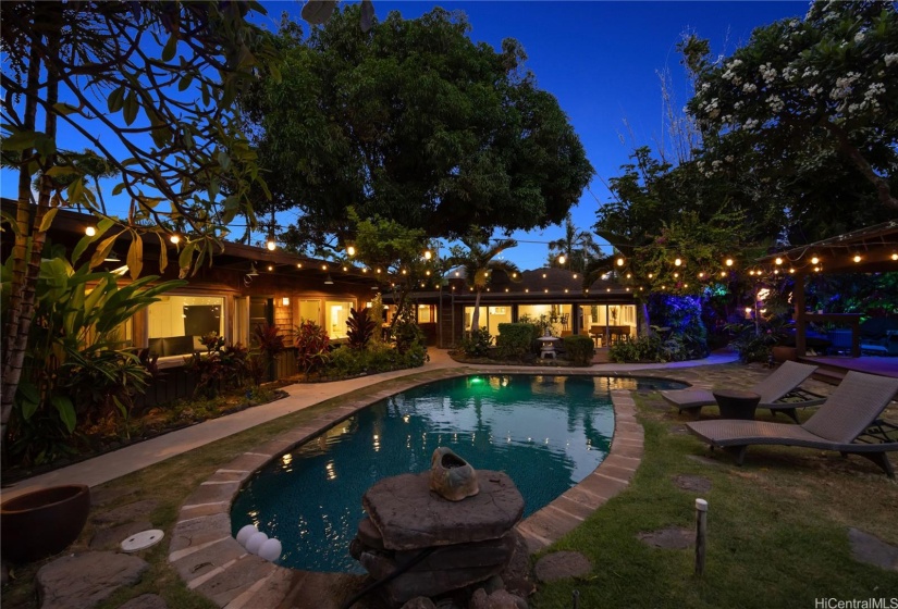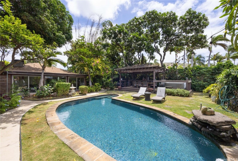 Old Waikiki Vibe!! Main home features 3 bedrooms, two bathrooms, open floor plan with views to private lush back yard and pool. 2 car garage fronts ocean access lane and is nestled between a two bedroom and one bath cottage and pool house with full outdoor bathroom. Separate studio cottage adds to the versatility and value of this one-of-a kind retreat! Tax office data differs from actual number of bedrooms, bathrooms, living area and number of structures.