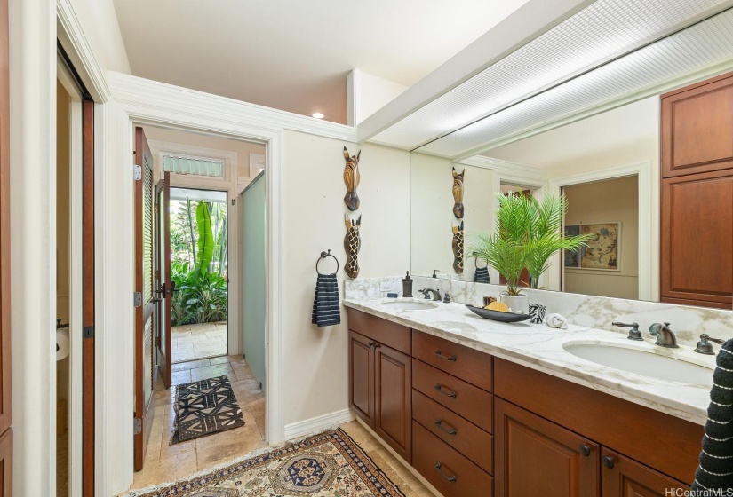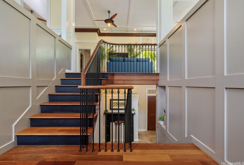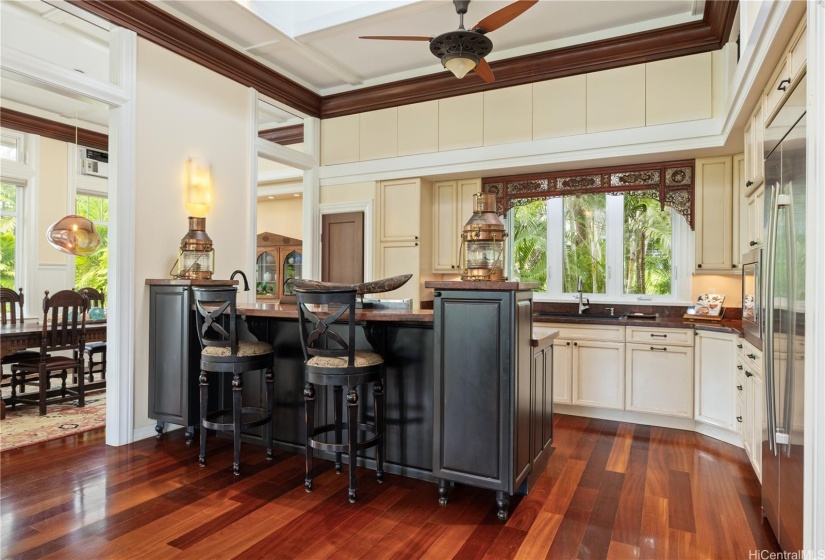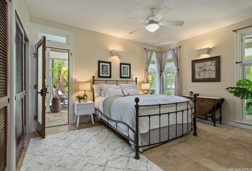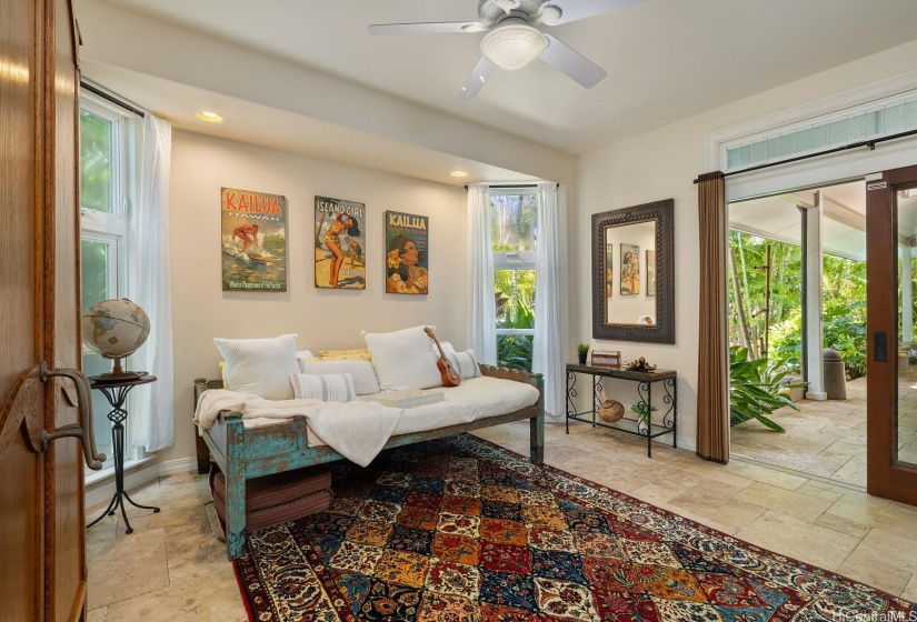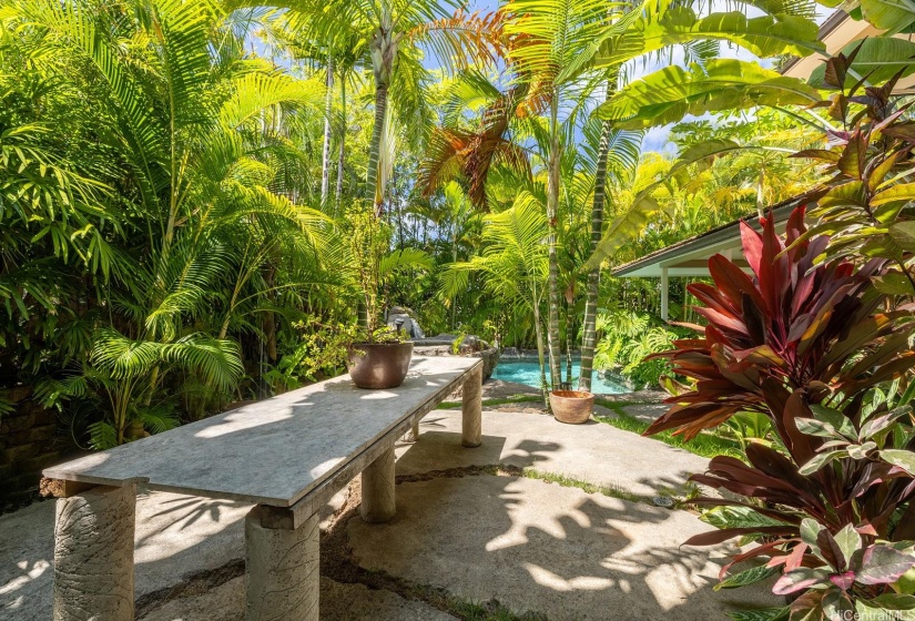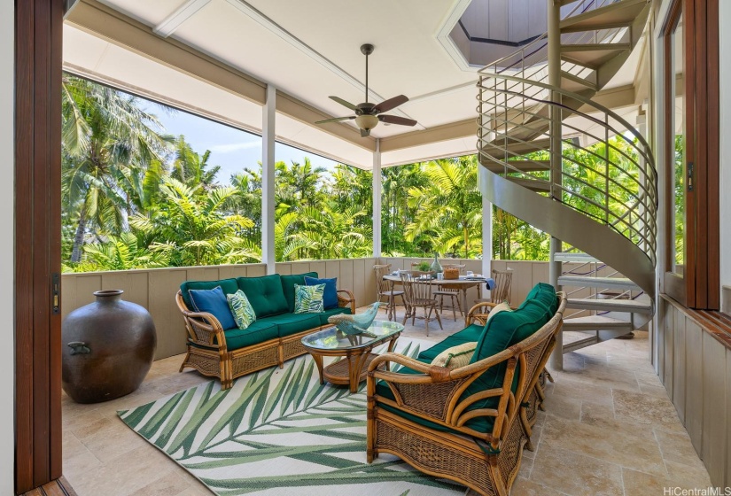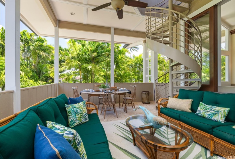 LANIKAI OASIS Secretly nestled at the start of Lanikai, this architectural accomplishment sits amidst a canopy of tropical treetops. The main living level greets you with vaulted ceilings and walls made of doors and windows that disappear so you feel as if you are in a treehouse. A stately office & powder room join this main level along with a formal dining room, eat-in kitchen, & spacious living room w/2 covered lanais. A spiral staircase leads to a rooftop deck with views of the ocean. Another staircase leads down to a pool & spa w/waterfalls in the jungle. Downstairs, 3/2 + 2-car garage. Primary suite offers a walk-in closet & French doors to a private lanai. Every room connects to covered wrap-around lanai, even the bathrooms.rnrnAmidst the mature landscape, a grassy open area for kids and pets to play. This home was made to breathe with clerestory windows both indoors and out, leaving you feeling more connected to the land and nature. Many custom details and quality materials were used to create this timeless Hawaii estate. Just 1 block to the nearest beach entrance, 1 block to Mid-Pac, and 2 blocks to both Lanikai & Kailua Beach Parks, you couldn’t ask for a better location!