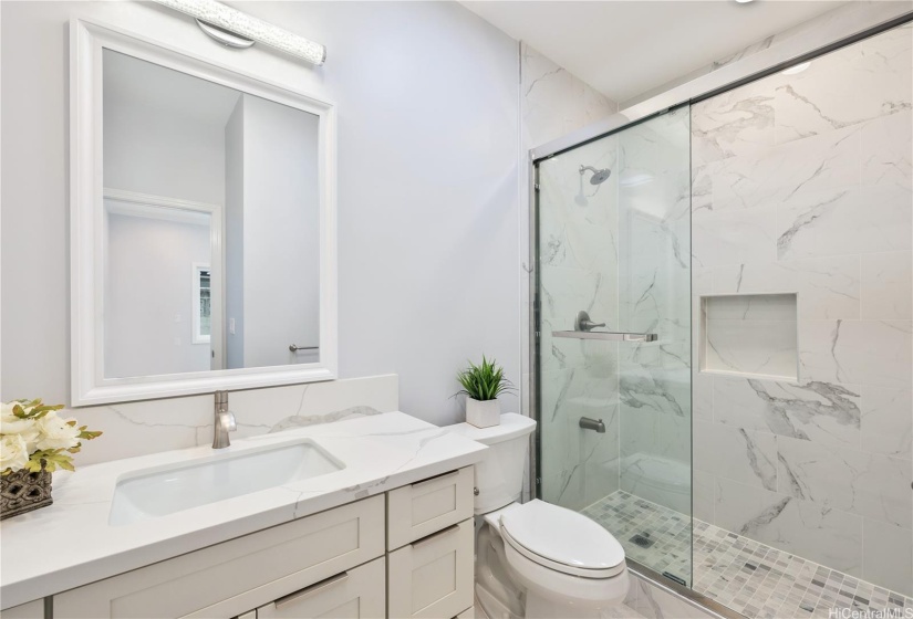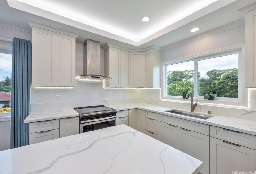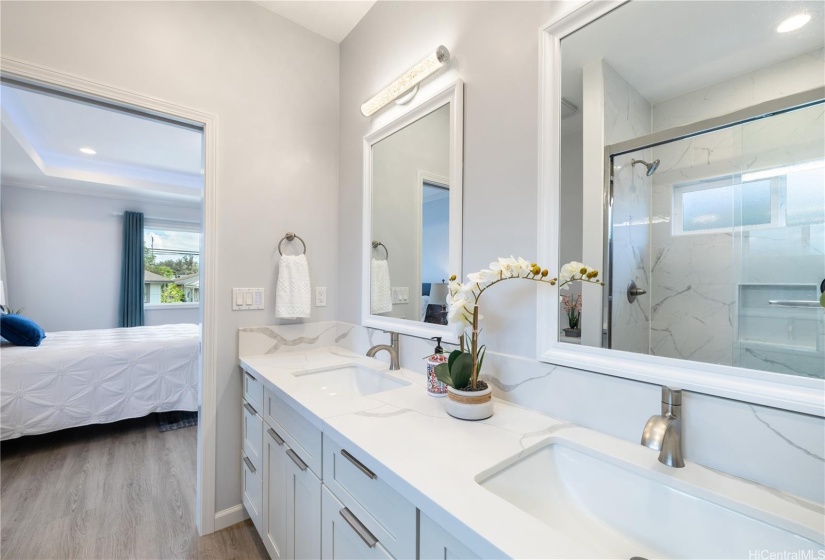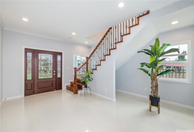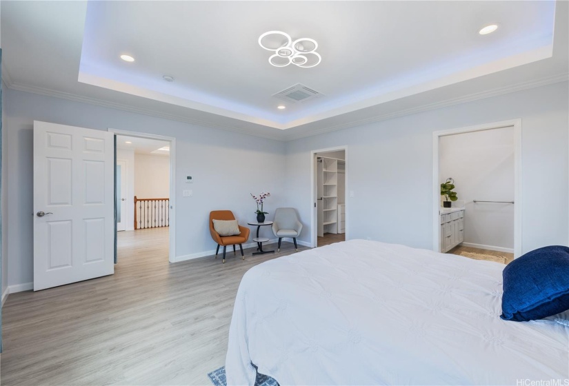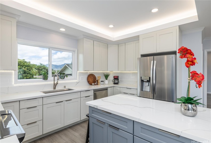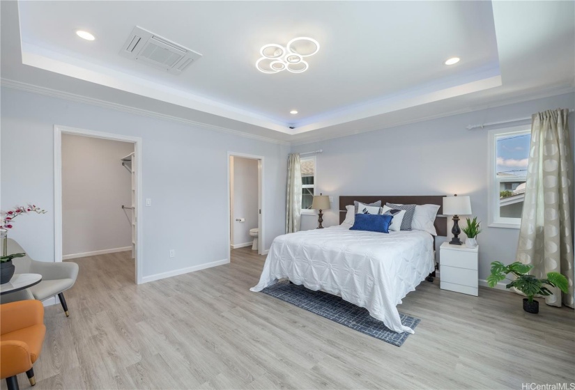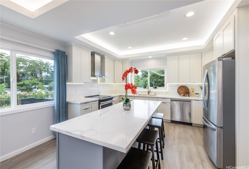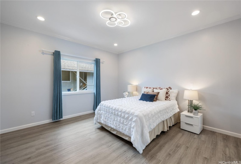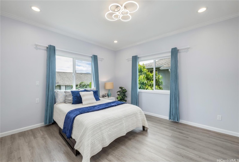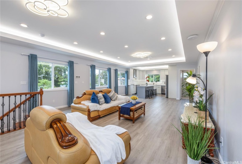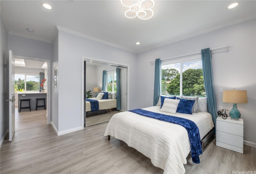 Stunning newly built two-story single-family home offering an expansive layout with 5 bedrooms, 4 full bathrooms, and a 2-car garage. Designed with both functionality and luxury. The first floor features 2 bedrooms, 2 full bathrooms, and a convenient wet bar, all accentuated by elegant ceramic tile flooring. The second floor continues to impress with 3 bedrooms, 2 bathrooms, and a large open kitchen featuring premium finishes and vinyl plank flooring. This modern masterpiece is designed for comfort and style, with an open-concept layout that seamlessly blends the living, dining, and kitchen areas. Each floor is thoughtfully crafted to provide ample space and versatility, with luxurious finishes throughout. Indoor split A/C units keep the home comfortable year-round, the living & primary bedroom at upstairs are enhanced by a fascinating suspended ceiling with amazing ceiling lights, elevating the home’s aesthetic appeal. Enjoy the tranquility of this location while being just minutes away from local amenities, schools, dining, and the vibrant Wahiawa Freshwater State Recreation Area. Don’t miss this rare opportunity to own a piece of paradise in a prime location.