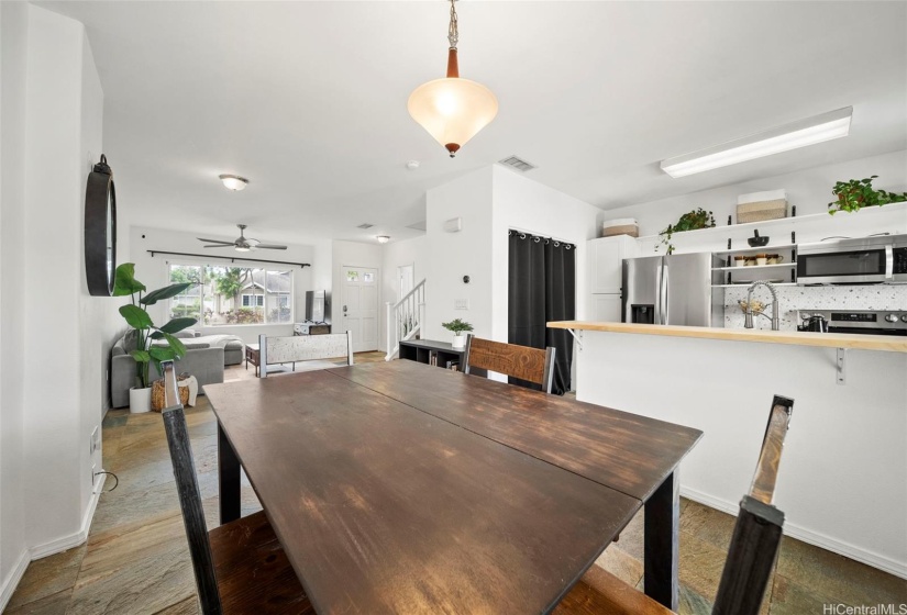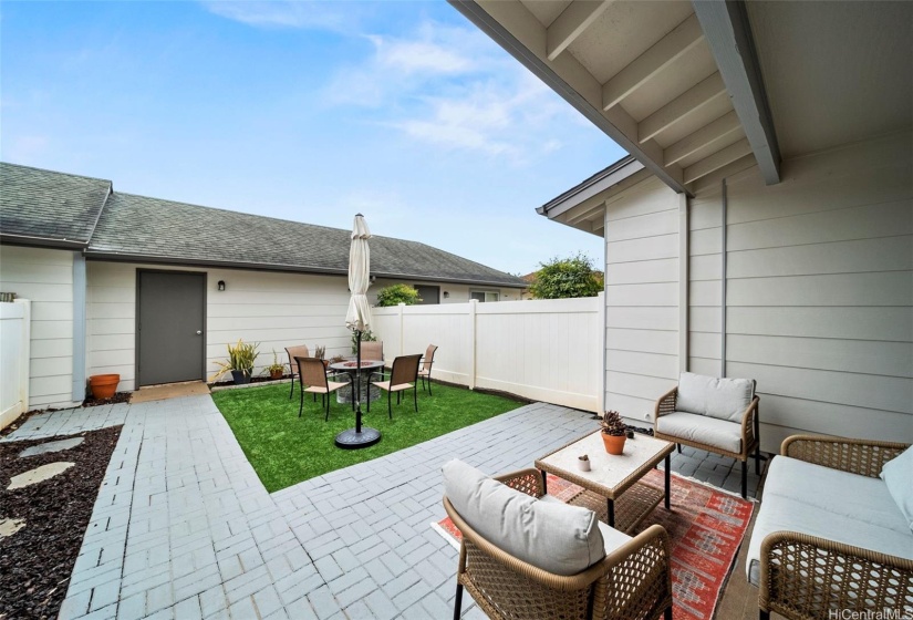 DON’T WAIT, ACT NOW! Deal of a lifetime! Waiting for RATES to fall? so is everyone else! You find opportunity when others aren’t looking. This spacious 3-bedroom, 2.5-bath townhome features a private fenced yard and a 2-car detached garage. Enjoy modern amenities such as keyless entry, an open floor plan with ceramic flooring downstairs and bamboo upstairs, plus central AC. The kitchen, remodeled in May 2024, boasts new stainless steel appliances, butcher block counters, a tile backsplash, updated cabinets, and an upgraded sink. The backyard is a relaxing oasis with pet-friendly turf, stone edging, rubber mulch, and large pavers. Move-in ready, it’s conveniently located minutes from Ka Makana Ali’i Mall, Wai Kai Surf, Hoakalei Country Club, and various restaurants.
