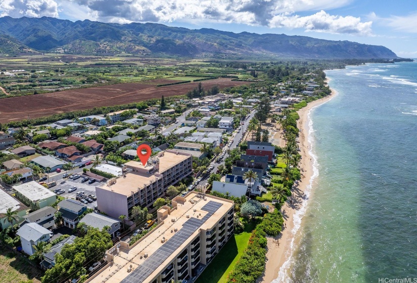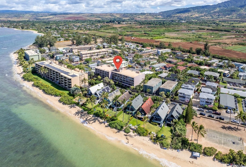 Price Reduced! VA approved building! Motivated Seller open to offers! Great investor or owner-occupant opportunity to own in the North Shore beach community of Waialua! This one-bedroom one-bath ground floor unit has a private enclosed courtyard, two car tandem security garage parking & full-size washer/dryer. Located across the street from the beach & Aweoweo Beach Park. Building amenities include barbecue exercise room, patio deck, recreation area, Beach access w/shower & rooftop Ocean & Sunset Views!