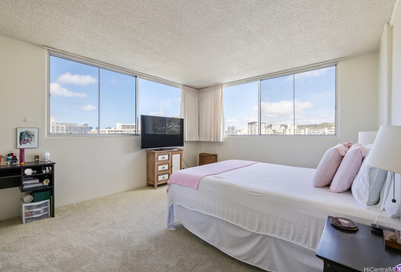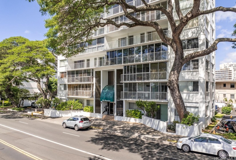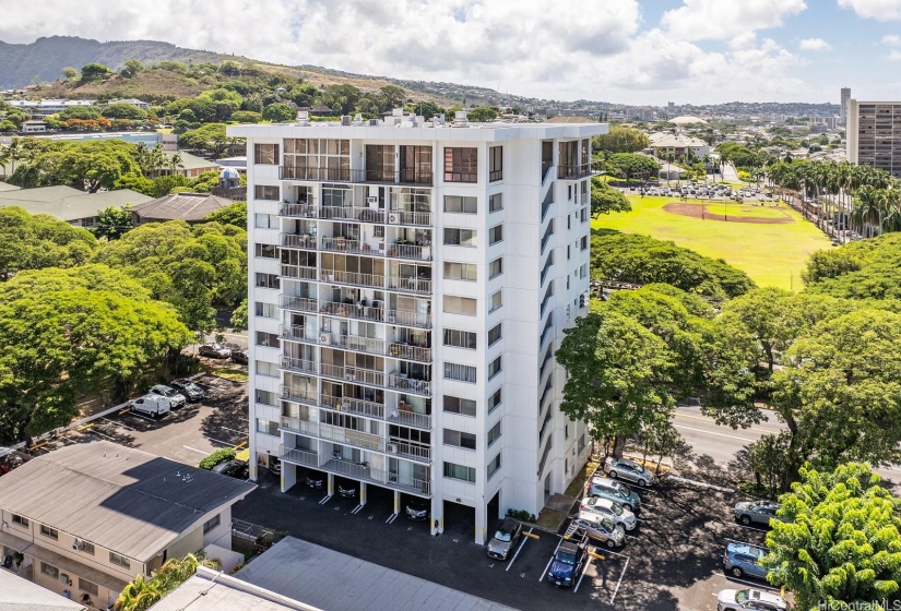 Perfect location at the foot of Manoa, across the street from Punahou School, near Maryknoll, the University of Hawaii and much more! This corner unit is bright and airy with beautiful mountain and tree top views. Full size washer & dryer. Pet friendly building with recent modernized elevator and retrofitted with new plumbing.