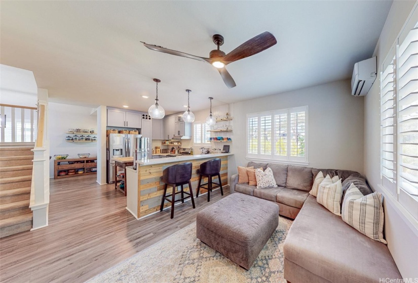 Discover this contemporary 4-bedroom, 2.5-bath home in the vibrant Ho’opili community. This beautifully designed residence features a modern open kitchen equipped with stainless steel appliances and a gas oven/range, perfect for any cooking enthusiast. Enjoy the comfort of split AC and an efficient gas stove, along with stylish updated lighting throughout.rnrnThe home also includes a PV system with battery backup, ensuring low electric bills and energy efficiency, tankless water heater andrnplantation shutters for the windows.rnrnExperience the lifestyle this community offers, with parks, an association pool, local shops, and a rail station just minutes away. You’ll also find the Kroc Center, golf courses, a shopping mall, UH West Oahu, beautiful beaches, and easy access to the freeway all within close proximity.rnrnDon’t miss your chance to own a piece of paradise in Oahu’s fastest-growing city! Schedule your viewing today!