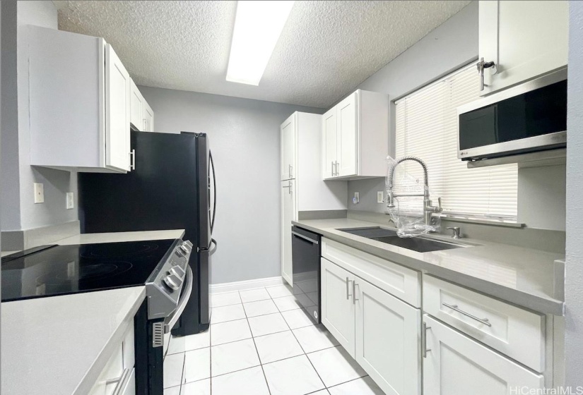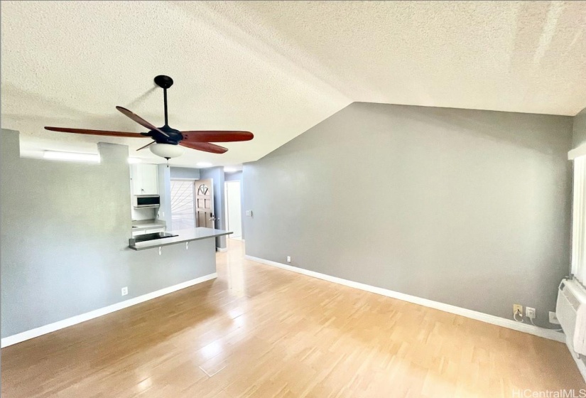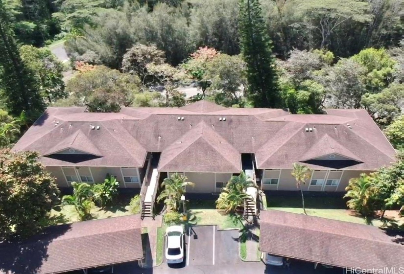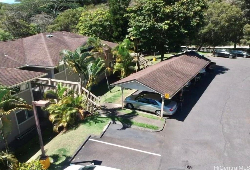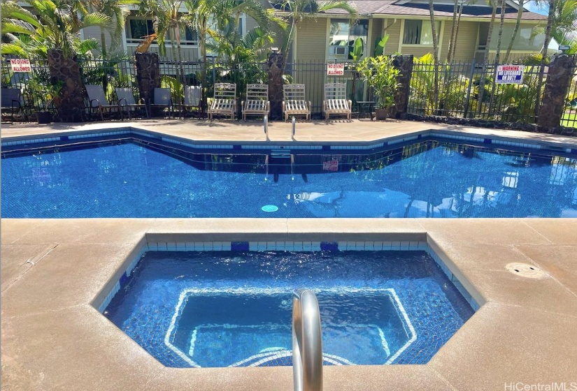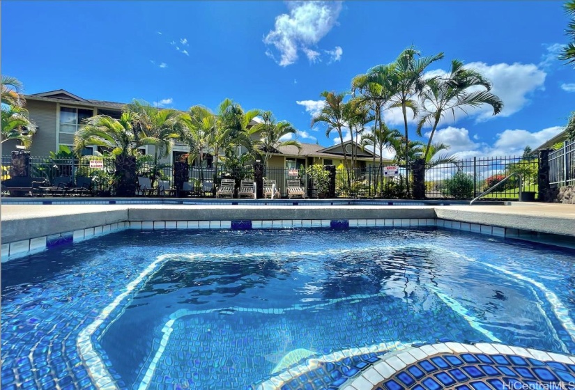 Spacious 2 bed, 2 bath, 2 parking townhouse. Vaulted living room with modern ceiling fan and window mounted AC unit. Well designed floor plan. Living room opens up to a large lanai with storage space and tropical views. Main bedroom has 2 full sized sliding mirror closets and AC unit with ceiling fan. Guest bedroom has window blinds and sliding door closet. Both bathroom showers are clean and connect to a large water heater. Upgraded washer dryer. Brand new faucet/ sink. Unit comes complete with an upgraded oven, clean glass top stove, dishwasher, garbage disposal, microwave and full sized refrigerator. Moments across from the playground and recreation area with swimming pool. The Ridge At Launani Valley is a gorgeous community within Mililani.