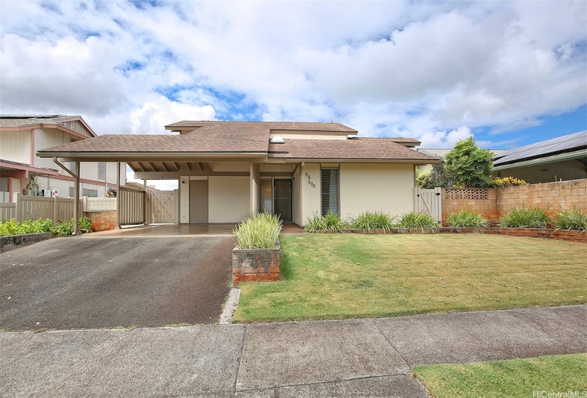 Welcome to this recently renovated 2-story home in the sought-after Mililani neighborhood, featuring 4 bedrooms and 2.5 bathrooms. The primary bedroom is ideally located on the first floor, providing easy accessibility and added privacy.rnThe upgraded kitchen is equipped with solid cherry wood cabinets and granite countertops. This area opens to a large, covered patio, perfect for indoor-outdoor living with cool breezes throughout. The property also offers a low-maintenance yard that includes a concrete walkway leading to a delightful Kau Orange tree, where you can enjoy sweet and juicy oranges. The home boasts new energy-efficient Pella double-pane sliding doors with micro blinds, top-of-the-line LVP flooring, and carpet, all under a freshly painted exterior. Nestled in a desirable community with a nearby park, this home is designed for comfort and enjoyment for relaxation and entertaining.