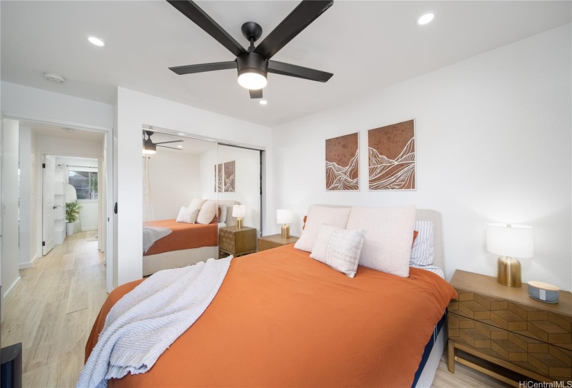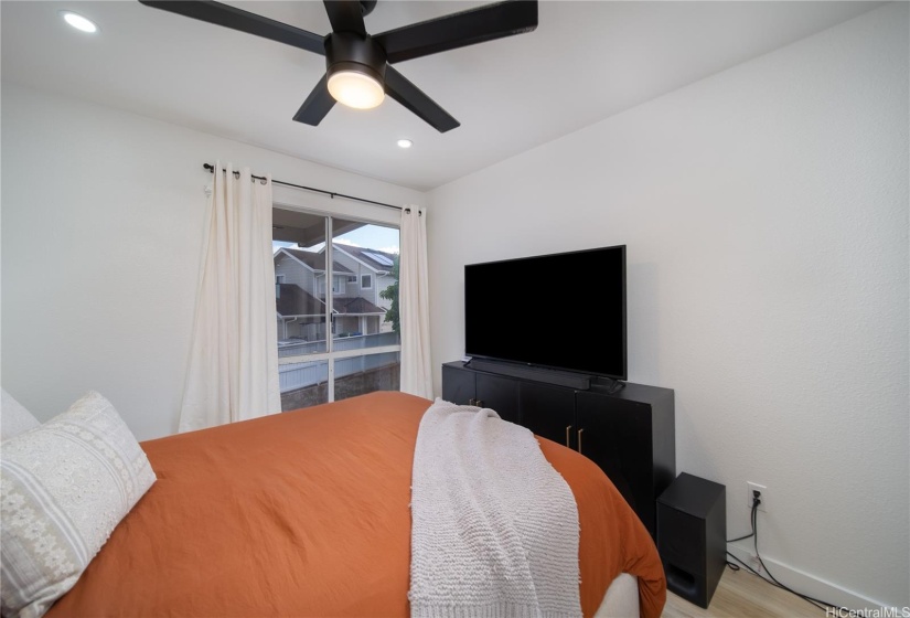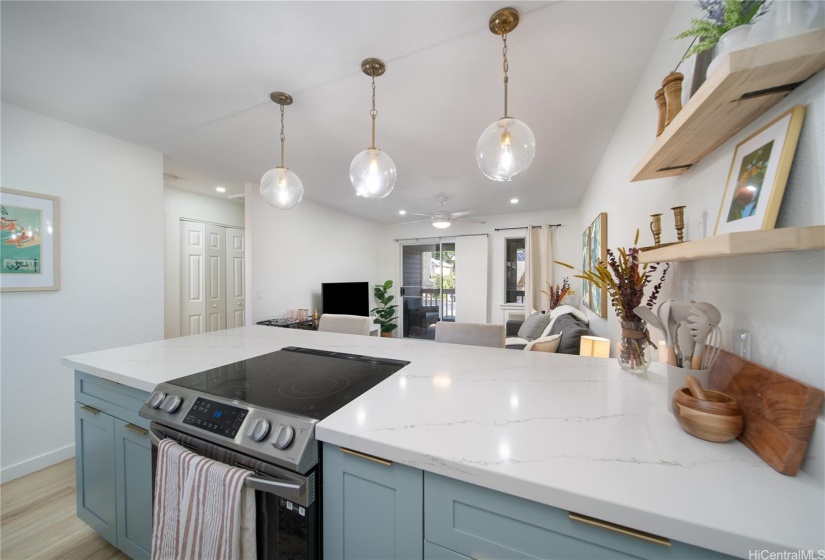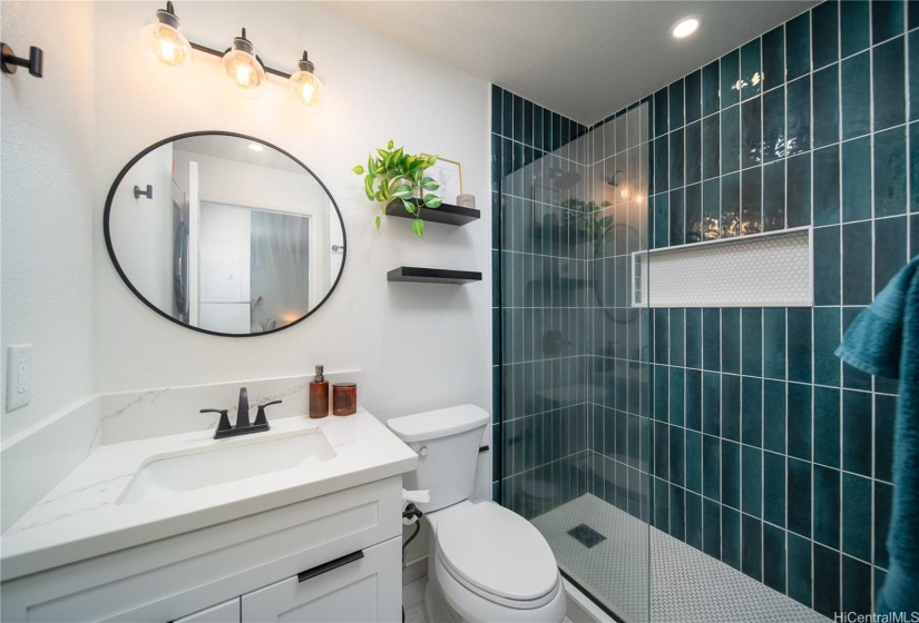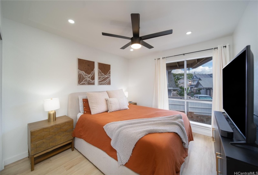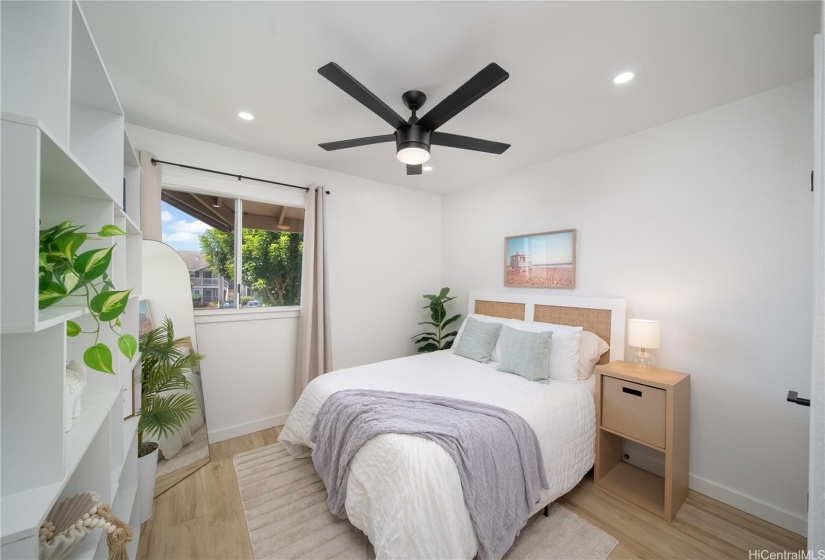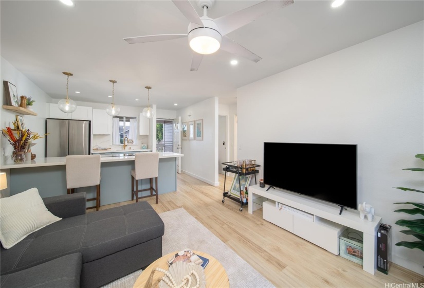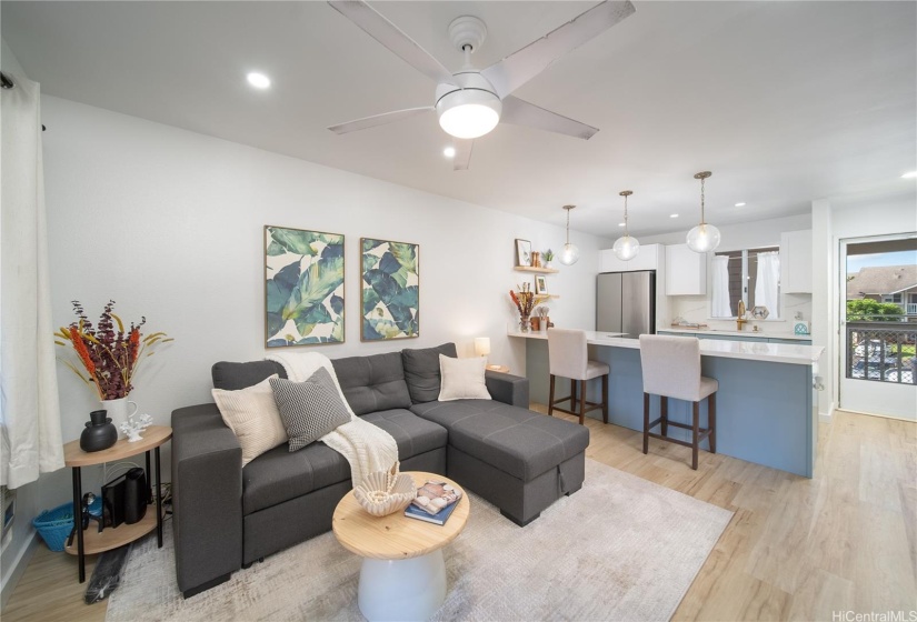 Welcome to Mahi Ko at Waikele! This stunning 2-bedroom, 1-bath townhome has been completely upgraded from top to bottom, offering modern, high-quality finishes throughout. The kitchen features brand-new quartz countertops, shaker-style cabinets, and stainless steel appliances. The bathroom includes a walk-in shower, while the home is enhanced by recessed lighting, ceramic tile, and luxury vinyl flooring. The open-concept layout and refinished ceilings make this space feel even more expansive. Additional conveniences include an in-unit washer and dryer, a covered lanai, and two assigned parking stalls, with ample guest parking available. Located in a prime area, you can easily access freeways, military bases, Waikele Shopping Center, and restaurants. The pet-friendly, VA-approved complex also has a resident manager on-site. Don’t miss out on this incredible opportunity!