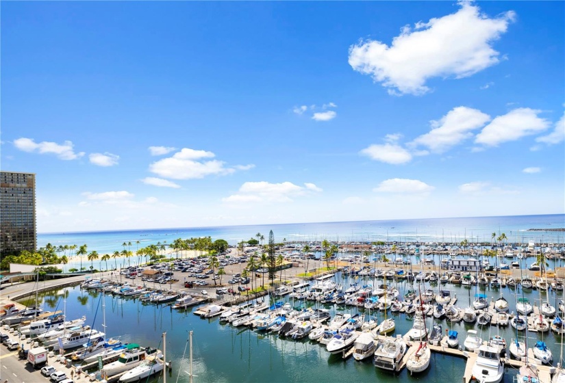 Discover coastal living with this 1 bedroom, 1 bath condo in Ilikai Marina. Stunning ocean views great you the moment you open the front door. This unit offers a serene escape and easy access to stunning beaches, world-class surf spots and delightful restaurants. Enjoy shopping just moments away, making this the ultimate destination for beach lovers and urban adventurers alike. Savor the convenience of being within close proximity to Ala Moana Center, the Convention Center, as well as a variety of fine dining options, including Red Lobster, Harbor Pub, and Chart House just right below your unit. Embrace the perfect blend of comfort and location—ideal for both relaxation and entertainment. There is public parking in the building and monthly rates available. Resort- Zoned, so it could be a legal vacation rental. Current owner did not rent the unit.
