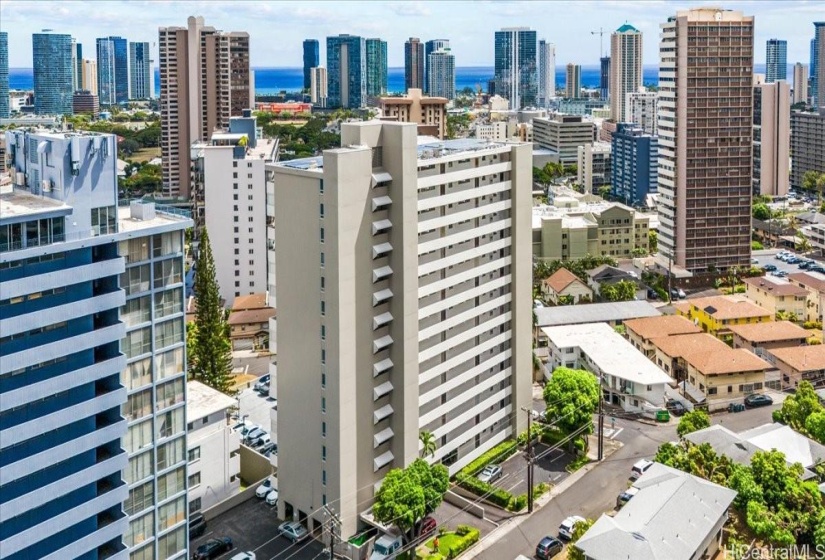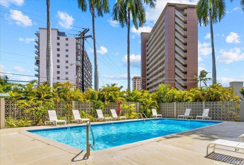 Two parking stalls and an oversized covered lanai with retractable awnings are the added value benefits of this lovely two bedroom two bath condominium unit located in the Punchbowl/Makiki Neighborhood. Just minutes from the trendy dining and shopping areas in the Kakaako and Ala Moana areas, as well as Ala Moana Beach and Waikiki beach, all the best things about Honolulu are close by. The metal awnings protect from inclement weather and the spacious square footage of the lanai create a second living area for this condominium home. The kitchen has granite counters, travertine floors, and newer appliances with a new range oven installed recently. The bedrooms have new luxury vinyl plank floors and the bathrooms have also been remodeled in 2023. The gated swimming pool is a great amenity and the lush landscaping around the property create a sense of privacy from other buildings nearby. The building’s exterior is clean and recently painted with a nice curb appeal. The central location in Honolulu allows for quick access to the airport, downtown Honolulu, and military installations. Great unit for a first time homebuyer or investor.