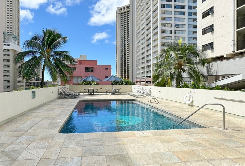 Waikiki Park Heights, fully furnished. Enjoy all the comforts and conveniences of Waikiki living. Famous Hy’s Steakhouse is on the ground floor. Nice 60 sq. ft. lanai to relax on, small ocean view. All utilities are included, Cental AC, with internet and basic cable. Tenant does need to get their own cable box, and internet box. Tenant must also get their own linens. Kitchen has two stove top burners, no oven. This secured building has 24 hour security, 24 hour laundry access, and salt water pool. Located in the center of Waikiki, close to the beach, shopping, dining, bus stop, International Marketplace, Honolulu Zoo, Waikiki Shell, Waikiki Aquarium, Ala Wai Golf course are just city blacks away. Surf storage available for 25>00 a month, bike and moped storage are also available. This unit comes with one uncovered parking stall. No pets, no smoking. One year lease, tenant to get renters insurance. Credit score required. PLEASE EMAIL FOR SHOWING REQEUST. NO CALLS PLEASE.