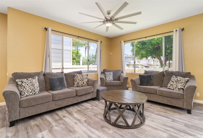 2.5% Loan Assumption, for VA buyers! 24 Owned Solar PV Panels & Solar Water Heater ($71K installed value!) This is the Verona model, w/ Extra-large Primary Bedroom Retreat, Offering Generous space & options to convert extra space to living quarters. What more could you want?!rnLovely landscaping? Check. Central AC (new Jan ’23) w/Nest thermostat? Check. Lower than average power bills? Check (Average bill only $140.) Short walk to the Community Pool, BBQ & play area? Check. Upgraded, Water Resistant Flooring? Check. Den/Study at top of stairs? Check. Parking for Four Cars? Check. Parking permit for overnight guests? Check. No houses in back, opens up your View. Maintenance Fees include water/sewer bill. Near Foodland, Holomua Elementary, Laulani Village Shopping, Dog Park, Hawaii Prince & Coral Creek Golf Clubs are all nearby. Just a little further to Kamakana Ali’i mall (Movies, Cheesecake Factory, Macy’s), White Plains Surf & Sunsets, the Wai Kai Wave Pool & Resort Community of Ko’olina (Four Seasons and Disney)- this is 808 Living! Payments on Assumable VA balance $782K (as of 8/1/24) is $3494.73/mo includes taxes ($193.81) & ins ($19.75.) Buyer to confirm Square Footage of lot.