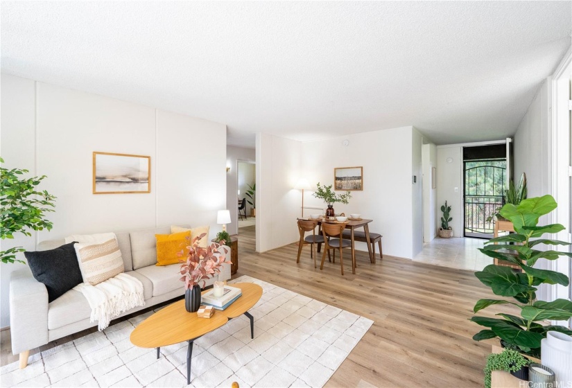 WELL PRICED CORNER UNIT. This spacious 3-bedroom, 2-bathroom single-level unit offers 1,030 square feet of spacious living space + 2 covered parking stalls in Ridgecrest-Melemanu. Step inside to find freshly updated luxury vinyl plank floors + other modern updates, creating a bright and welcoming atmosphere. The corner unit location ensures added privacy and tranquility with the living area seamlessly connecting to the outdoor lanai, where you can enjoy pleasant views and fresh breezes. You’ll appreciate the convenience of having two covered parking stalls, including a desirable corner stall closest to the building. The pet-friendly community offers a range of amenities, including a refreshing pool and a rec room for gatherings and relaxation. In-unit laundry with a washer and dryer adds to the ease of living, while low maintenance fees make this a very attractive building. Conveniently located near Schofield Barracks, golf courses, shopping centers + freeway access.