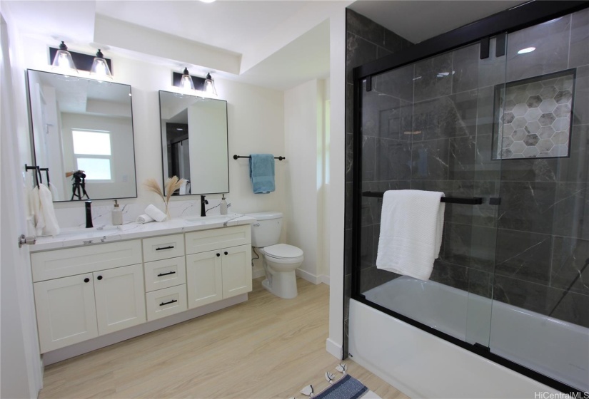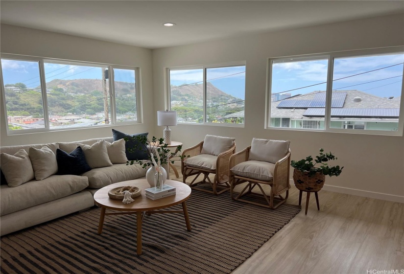 WELCOME to this NEWLY RENOVATED HOME! An incredible opportunity & a must-see property! Special features include two attached separate units with 2 garages (ceiling is low), lots of storage space or may be used for an office/media room, 2 electric meters (grandfather-in), NEW electric wiring, NEW plumbing, and for the front unit there is a NEW refrigerator. This is a corner lot with city, mountain, & ocean views! Perfect for multi-generational type of living and/or rental. The #bathrooms, differ from tax records.