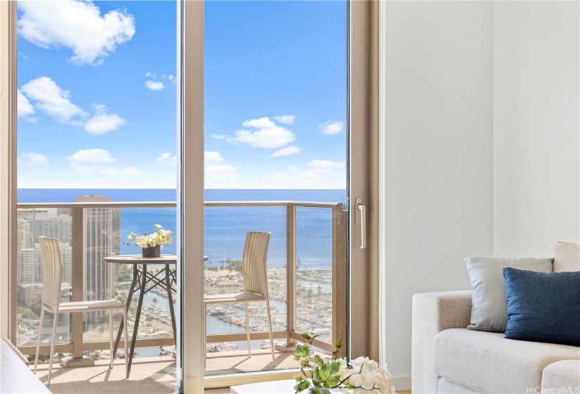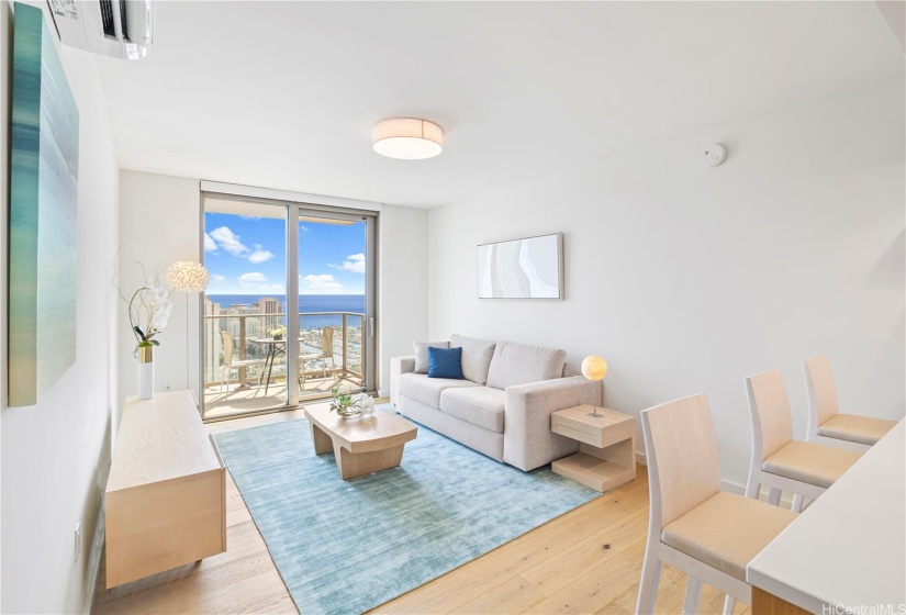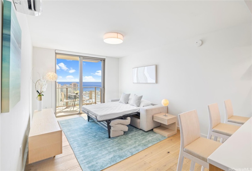 30-night minimum stay. This unit is currently available. This unit is unavailable between December 25, 2024, and April 12, 2025, but please inquire about up-to-date availability. Enjoy the convenience of city living, with resort-style amenities at Sky Ala Moana West! This fully furnished, one-bedroom unit with floor-to-ceiling windows, has two full beds, and a pull-out couch in the living room. The kitchen is equipped with top-of-the-line Bosch appliances and Quartz countertops. Relax on the private lanai with sweeping city, ocean, and Diamond Head views. Enjoy the lavish spa-like bath after a long day.
