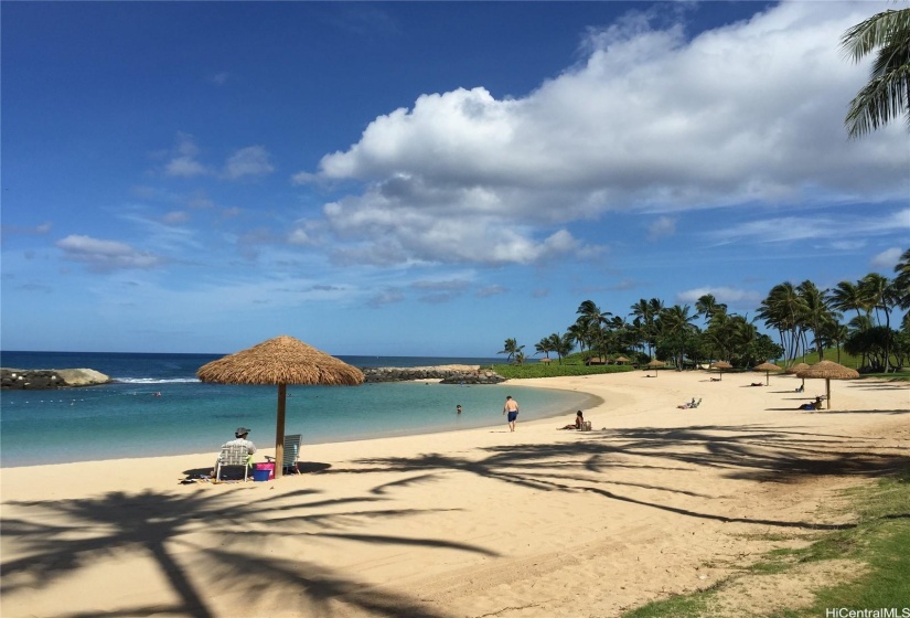 PREMIER BEACHFRONT UNIT AT KO OLINA BEACH VILLAS! Experience the ultimate resort lifestyle in this exceptional beachfront unit, perfect for personal enjoyment or as a lucrative rental income opportunity. Just steps away from the ocean and lagoon pools, this is the only condominium located on Lagoon Two in Oahu’s luxury Ko Olina Resort. Indulge with these amazing amenities: Expansive Lanai, enjoy an impressive lanai with a pocket door, seamlessly blending indoor and outdoor living—ideal for entertaining guests. Gourmet Kitchens, custom-designed by Hawaii’s celebrated chef Roy Yamaguchi, the kitchens are equipped with top-of-the-line Sub Zero and Wolf appliances. Luxurious Interiors, the villas feature exquisite finishes by renowned designers Philpotts & Associates, tailored for the Hawaiian lifestyle. Security and Access, benefit from 24/7 onsite security and card-controlled access at gates and doors, including beachfront access. This villa is fully furnished and approved for legal short-term vacation rentals (minimum stay of 7 days). Don’t miss your chance to own a piece of paradise!