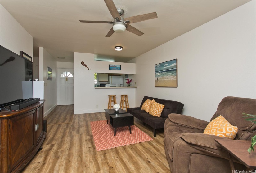 PRICED TO SELL NOW! Absolutely THE BEST view in all of Makakilo Cliffs! This 2-bedroom, 2-bathroom, 2-covered parking corner/end unit is located on the perimeter of the complex – with commanding ocean views from the living room, lanai and primary bedroom. Enjoy morning coffee or gorgeous sunsets right from your covered lanai. This 2nd floor unit is conveniently designed with NO STAIRS to climb – just walk straight from your parking stall over the ramp and into your front door! Lower electric costs – as this unit features 15 solar panels on a 20yr lease, owned by the association. Current 2 person occupants pay ~$32/mo! Washer and dryer in the unit, and pet friendly as well. Well run association with lots of guest parking for your visitors. Easy freeway access, and close to Kapolei’s Second City, military bases, Ka Makana Alii Mall, UH West Oahu, beaches, airport, Costco, and more! Hurry, you won’t want to miss out on this one.