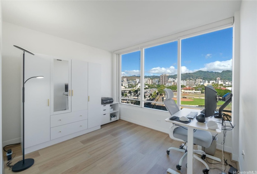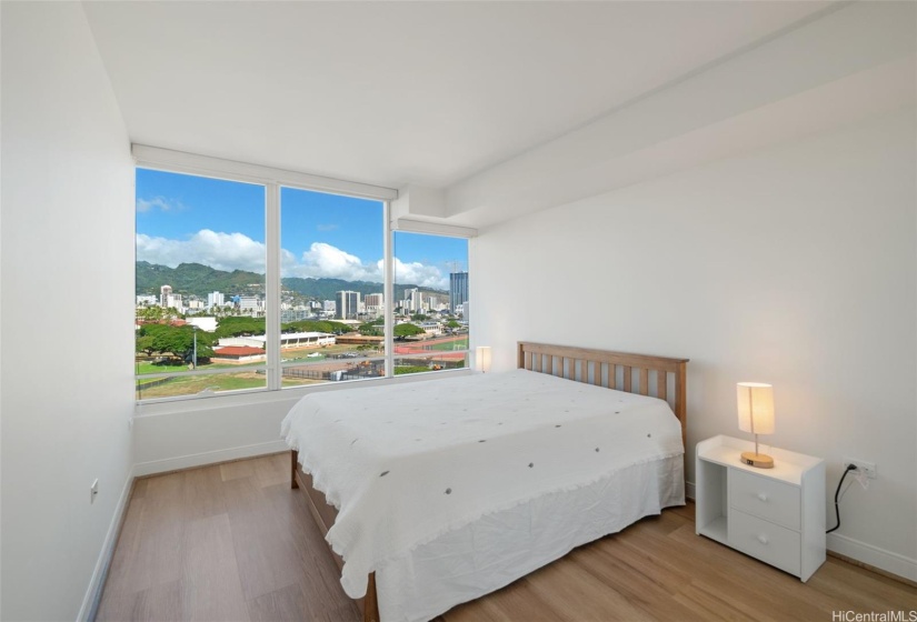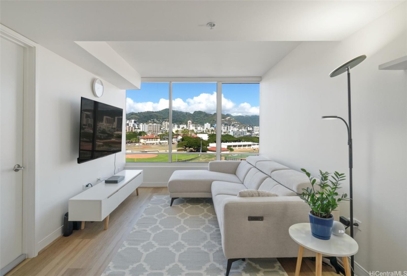 Luxury living at this 2 bedroom, 2 bathroom condo at Pacifica Honolulu with amazing views of the Koolau mountain and city. Recently re-painted with new appliances. Rarely available 2 separate (NOT TANDEM) parking stalls. 5th floor amenity deck includes: bbq areas, fireplace, movie theaters, exercise room, pool, jacuzzi, sauna, and more! Pet friendly with a spacious dog park on the ground floor. EV Chargers (2) with Surfboard and bike storage area as well. Within walking distance or a short drive of everything Kakaako has to offer.