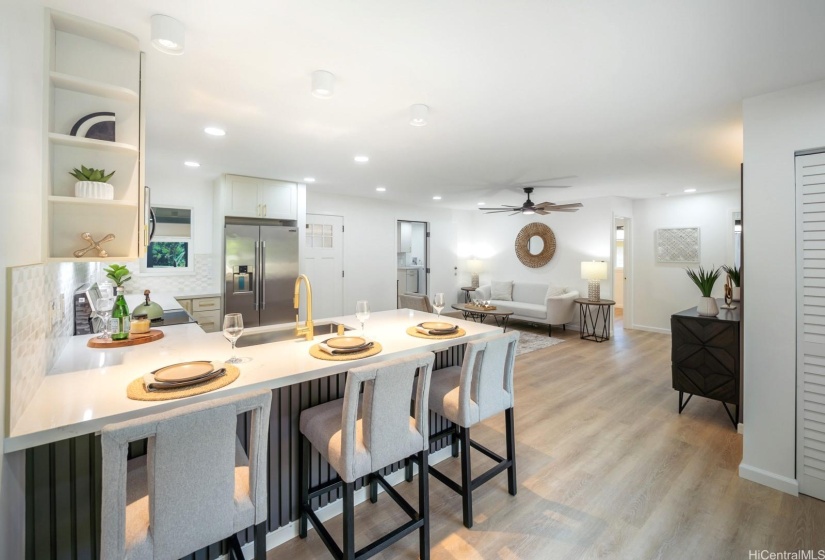 MANOA RARELY AVAILABLE – Welcome to your Dream Home!! This completely renovated home is located in desirable Manoa Valley & is perfect for multi-generational family or INVESTMENT w/ multiple rental options – 4bed/2bath, 3bed/2bath, and 3bed/1.5bath. Located on a private 9,993sf flag lot, this home features multiple designer kitchens, quartz counter tops, all new appliances, new fixtures, large kitchens, ample storage, recessed lights, open floorplan, rain showers, upgraded cabinets, lanai space for BBQs overlooking Manoa Park Baseball fields, designer backsplashes, new windows, 3 separate laundry areas, resort-like showers, accent walls, large undermount kitchen sinks, very private, 10+ parking stalls, & professionally landscaped yard perfect for pets, children, & entertaining. This home is conveniently located near Manoa Shopping Center, Manoa & Noelani Elementary, Manoa Park, Waipio, Safeway, Punahou & Mid Pacific Schools, University of Hawaii, Chaminade, freeway access, many restaurants, banks, parks, bus stops & more…Don’t miss this opportunity!!