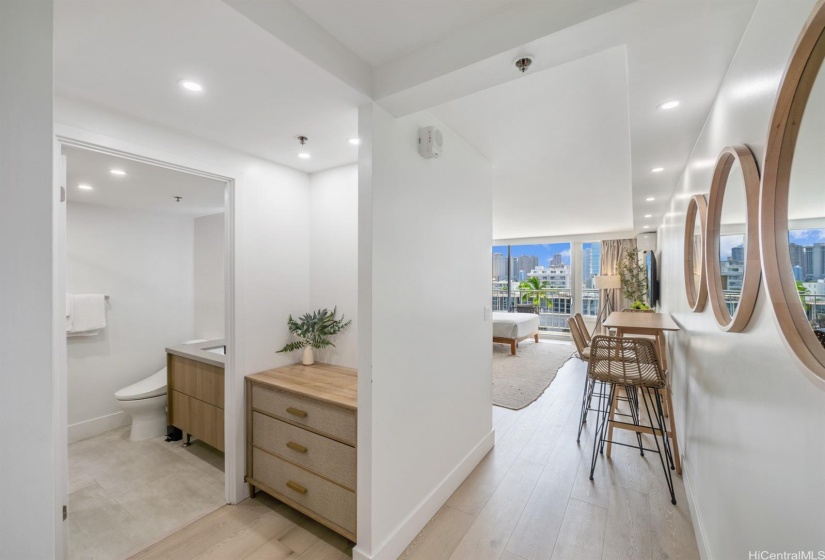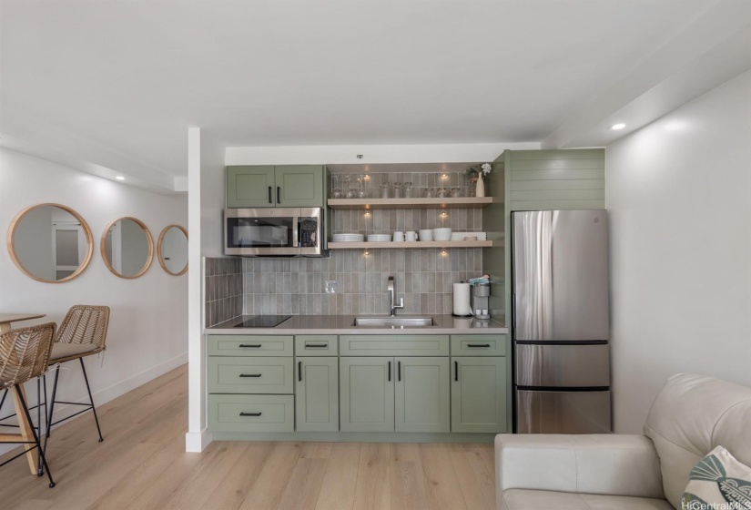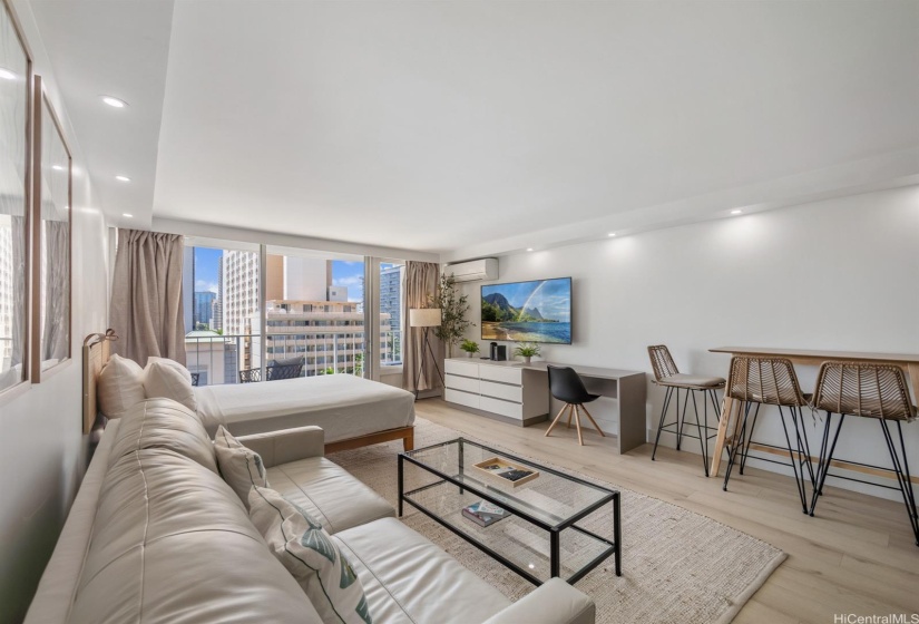 Don’t miss your chance to own a pristine turnkey Airbnb unit in the coveted Waikiki building of Marine Surf. This fully-furnished studio, remodeled in 2024, showcases a sleek and modern design with tasteful, contemporary finishes. It features Mitsubishi split air conditioning, a well-appointed bathroom, a stylishly functional kitchen, and abundant storage throughout. The unit also offers the convenience of one covered assigned parking. Enjoy the building’s amenities including a swimming pool and an on-site restaurant. This legal vacation rental combines elegance and practicality for your investment or retreat. Owner is also listing 364 Seaside Ave #403, MLS #202420941.