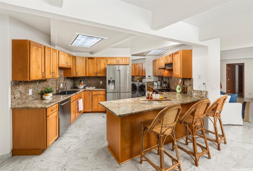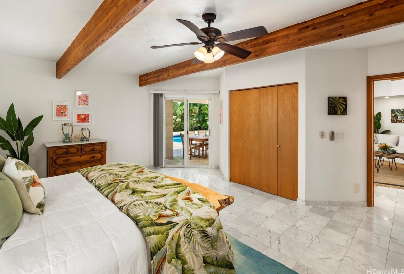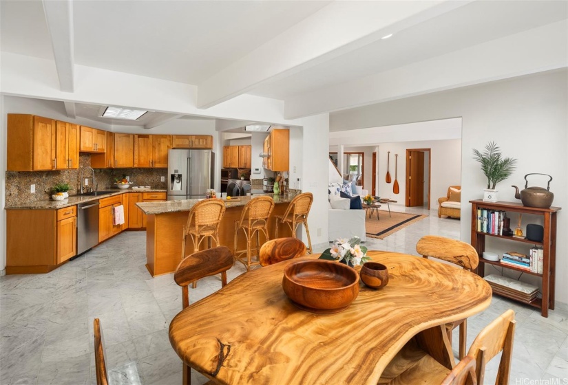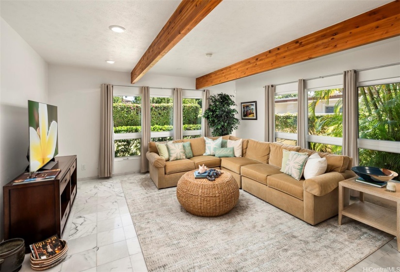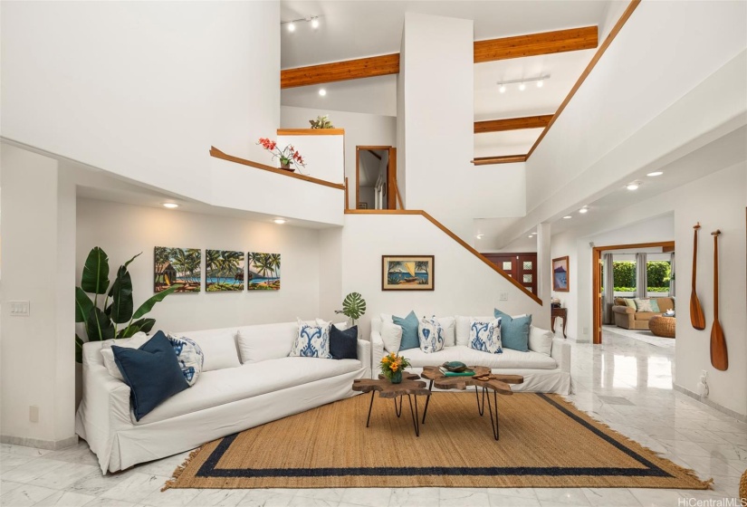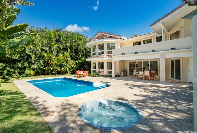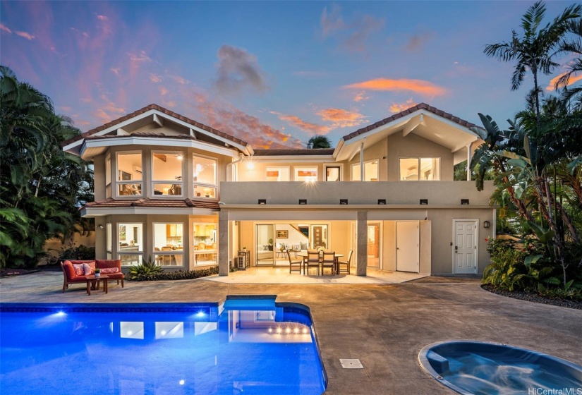 Character Filled Residence in The Heart of Coveted Kahala! This spacious 6-BD home is situated on a premier street & offers an expansive open floorplan w/ light & bright interiors, dramatic vaulted ceilings w/ striking hardwood accent beams, and an abundance of sunlight filled windows. Enjoy multiple lounge & living spaces that connect to an outdoor covered lanai that overlooks stunning tropical landscaped grounds & a sizable pool, spa & outdoor gazebo ideal for poolside entertaining. The kitchen offers spacious wraparound counters, stainless appliances & dine-in counter seating and connects beautifully to the adjacent dining alcove. A versatile floor plan offers 2-BD suites on the ground floor, one of which connects to the poolside lanai. The sizable Primary Suite on the 2nd floor offers lovely garden views & an adjoining lanai. Two additional bedrooms provide a thoughtful layout and share a connecting bath. The 6th bedroom is an ideal suite complete w/ separate entry access, full bath, wet bar & private lanai, ideal for extended family or work from home use. This home is exceptionally well located to nearby beaches, restaurants, shopping, The Kahala Hotel, golfing & more!