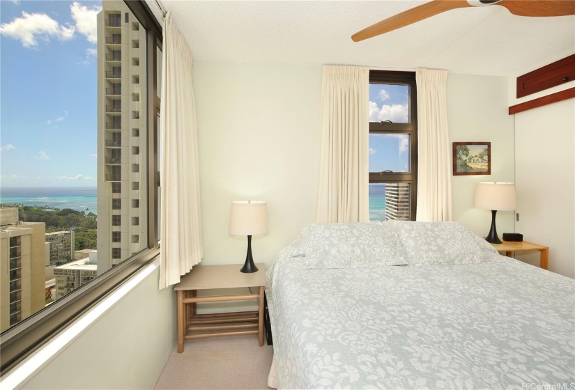 PRIME Tower One high floor, larger end unit facing Diamond Head/Ocean. Upgraded Kitchen & Bath. LEGAL SHORT TERM / DAILY VACATION RENTALS ALLOWED! New owner must apply for STR. Turn-key, rental ready condition with parking (unassigned) included! Desirable corner-end location with the largest floor plan. Panoramic views of Diamond Head & Ocean. Additional windows in the kitchen, bedroom and bath only in corner end units. Waikiki beach and Ocean views from kitchen window as well. Built-in Wall bed in living room and dual bathroom access provide lots of living arrangement options. Lanai/patio is perfect for indoor/outdoor “Island tyle” living. Open air style lobby with waterfall & koi pond. World famous resort Waikiki location, close to beach, golf course, Kapiolani Park & Diamond Head.