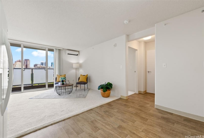 NEW LISTING! Move-in ready 1-bedroom, 1-bath condo offering affordability, convenience and amazing views! This well-maintained unit with 1 parking stall has a low HOA fee and a RARE extended 70 sqft lanai to sit and enjoy the sweeping mountain and downtown views that are largely protected by government buildings, green space and city grounds. Freshly painted with an open layout, split A/C with newer stack washer/dryer. Located in Building A of 801 South, a pet-friendly complex with 24-hour security, an on-site resident manager, 5 elevators, party rooms, ample visitor parking. Unbeatable location on the edge of downtown, near hospitals, freeway access, Kakaako’s trendy restaurant/nightlife, parks, city grounds and the popular Salt in Kakaako. Perfect for investors or first-time buyers and PRICED TO SELL as one of the best values in 801 South! Don’t miss this opportunity!