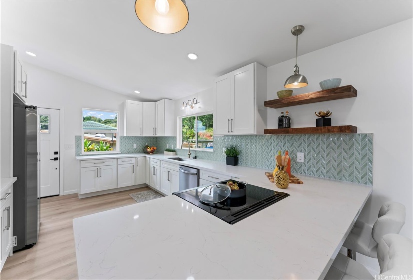 MOTIVATED SELLERS! A unique home opportunity awaits! Enter your fully renovated and charming four-bedroom, three-bathroom residence, complete with a studio featuring a separate entrance with a kitchen & washer, nestled in the Waikalani Woodlands neighborhood! This property showcases a sleek kitchen, modern appliances, and updated flooring, situated on a spacious 11,165 sq ft lot. Centrally located near Mililani town, it’s close to 24-hour fitness, shopping centers, and restaurants. Imagine a serene outdoor setting, fully fenced and meticulously landscaped. This home is a must-see!