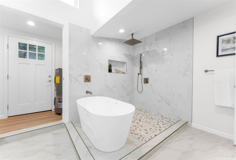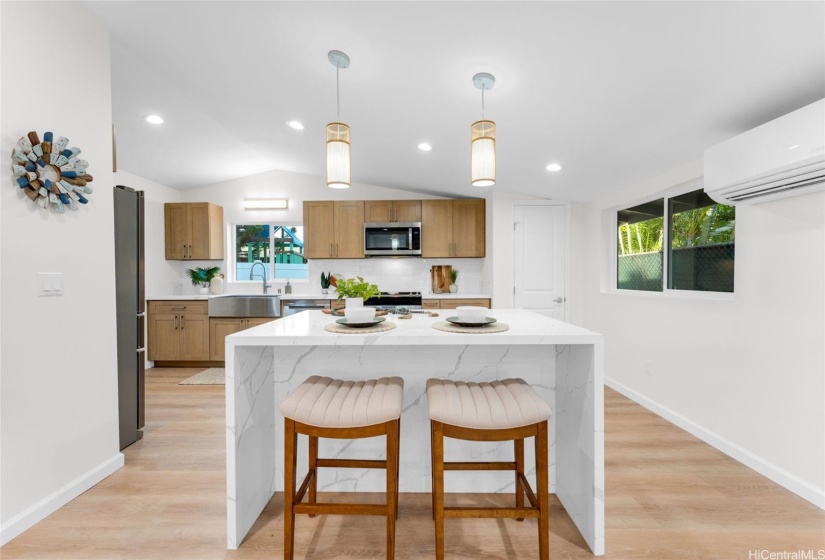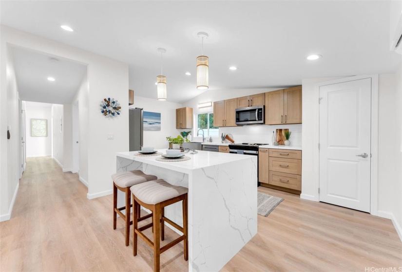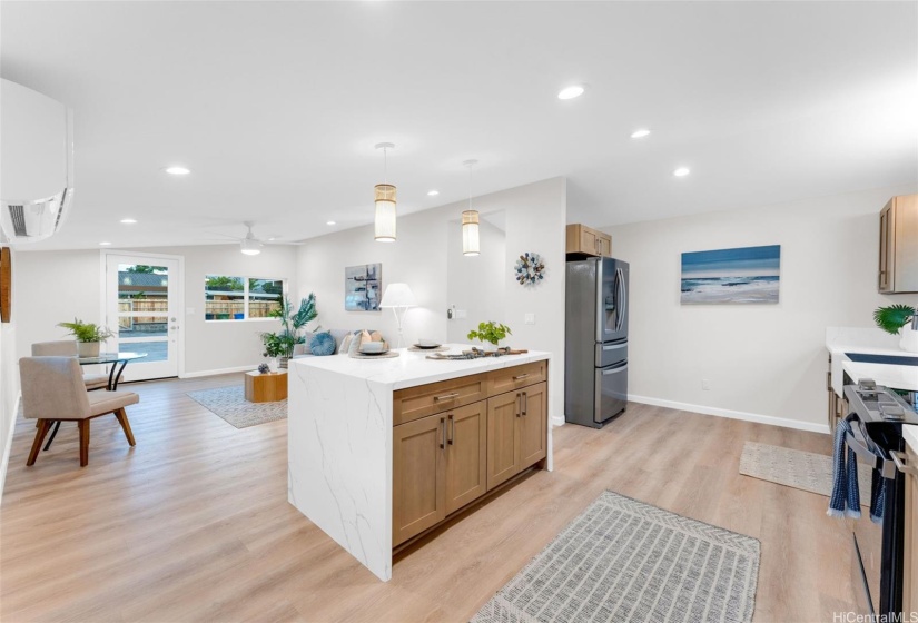 Welcome to a newly renovated home a block to Kalama Beach Park located in a highly desirable neighborhood of Kalama Tract. This one story home with vaulted ceilings boast 4 bedrooms, 2 baths and a bonus room that can be used as an office/den, yoga/exercise room or an art studio. Other features include shaker cabinets, quartz countertops, stainless steel appliances, beverage fridge, pantry, tile & LVP flooring, ceiling fans, split AC, soaker tub and updated electrical & plumbing. Primary bedroom with sliding door opens out to a large brand new hot tub where you can enjoy private time to unwind & relax or spend time with family and friends. The expansive and spacious outdoor area provides many possibilities for creating your ideal outdoor oasis, great for barbeque and entertainment and a large space to build a pool, fully fenced yard with tropical landscaping. Possible eligible for private membership in Kalama Beach Club. Large 2 car carport for vehicles and yard boat storage with extra parking. Outdoor shower to rinse off after a fun day at the beach. Minutes away to Buzz’s steak house, Kalapawai Market, Target, Whole Foods, schools, parks, golf course, eateries and shops.