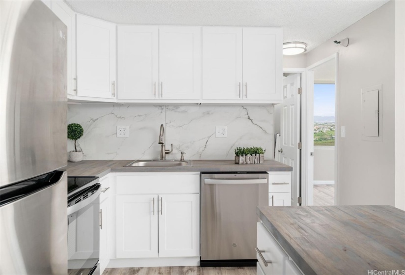 Discover the ultimate island lifestyle in this luxurious 2-bedroom, 2-bathroom condo, offering 890 square feet of serene living space. Wake up to breathtaking views of the mountains and the ocean, with sunsets that light up the sky in vibrant hues. The sleek, modern kitchen is perfect for culinary adventures, while the spacious bedrooms provide a peaceful retreat. Enjoy resort-style amenities, including a pool, pickleball and tennis courts, and lush tropical landscaping, all in a tranquil, sought-after community. Conveniently located near shopping, dining, and entertainment, this is your perfect island escape. Schedule your private tour today and experience Hawaiian living at its finest! Completely remodeled unit never lived in since remodel. One or more photos have been enhanced.