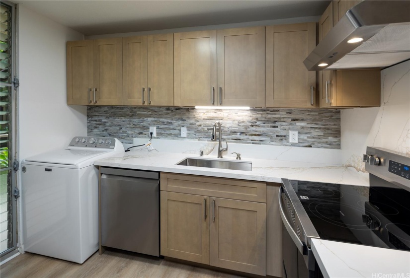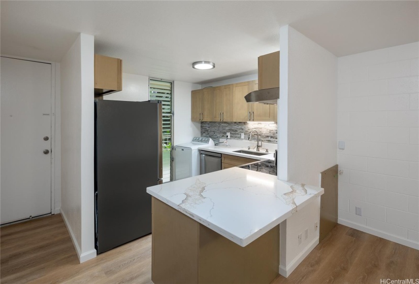 Be the first to live in this completely remodeled stream side unit at Waikalani Woodlands. Cool breeze through the trees keeps this unit peaceful located on the second floor. Spacious 2 bedroom 1 bath and 2 parking (one covered, one uncovered) unit is available for immediate move in. Large screened lanai overlooks the stream and wooded area by the complex. Brand new appliances and washer/dryer located in unit. Tenant pays for electricity, cable/wifi and renters insurance required ($300K liability). No pets, smoking/vaping, co-signers or site unseen applications. Minimum credit score of 675 and $30 nonrefundable application fee. 24 hour notice to show and all prospects must call office for showing requests. Minimum 24 hour notice to show. Complex offers community pool, resident manager, security cart, recreation area, and more. Close to bases, freeway, North Shore and conveniences.