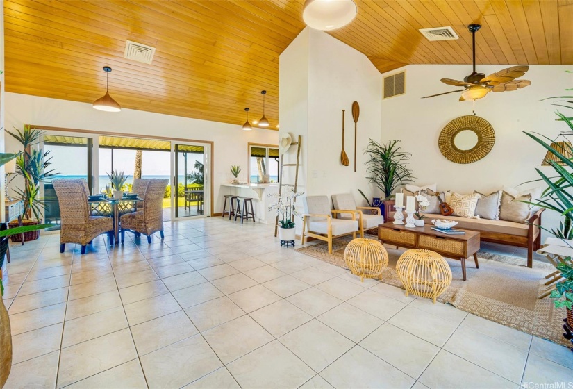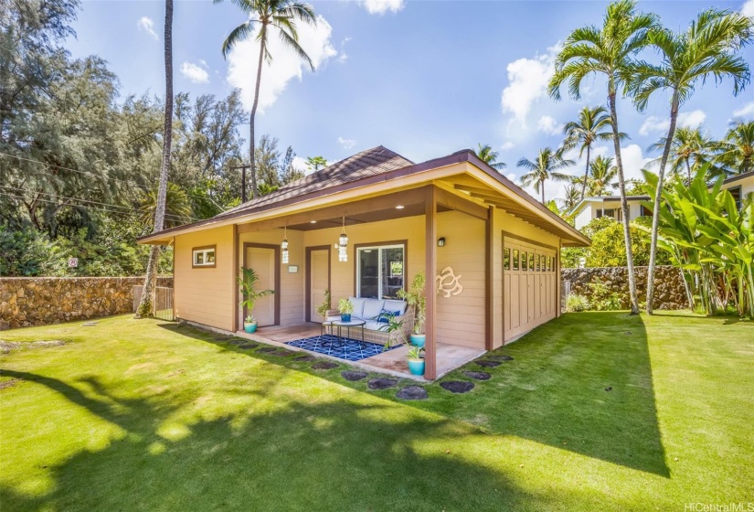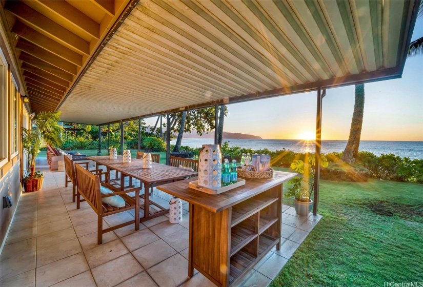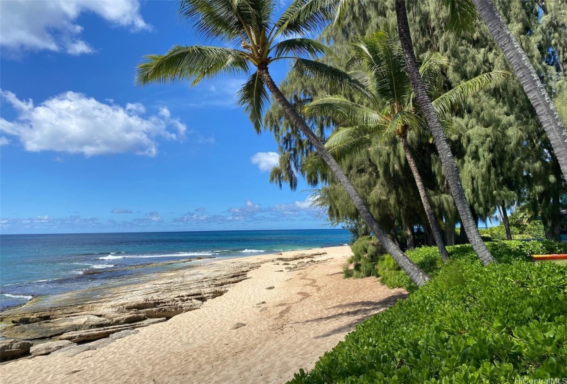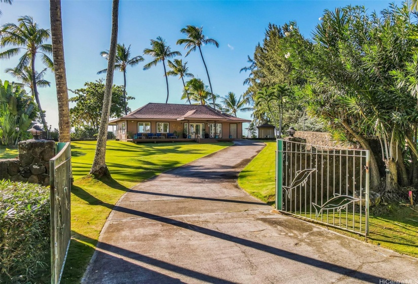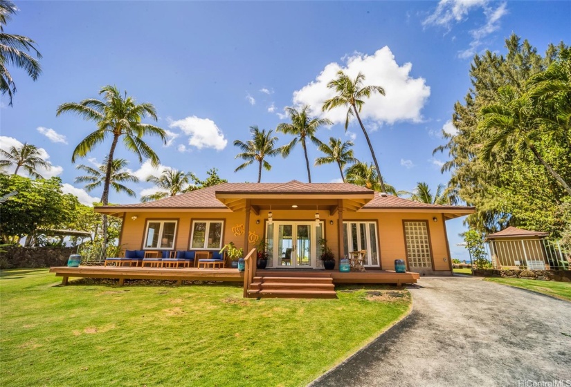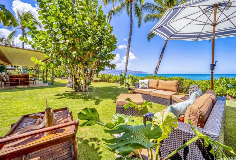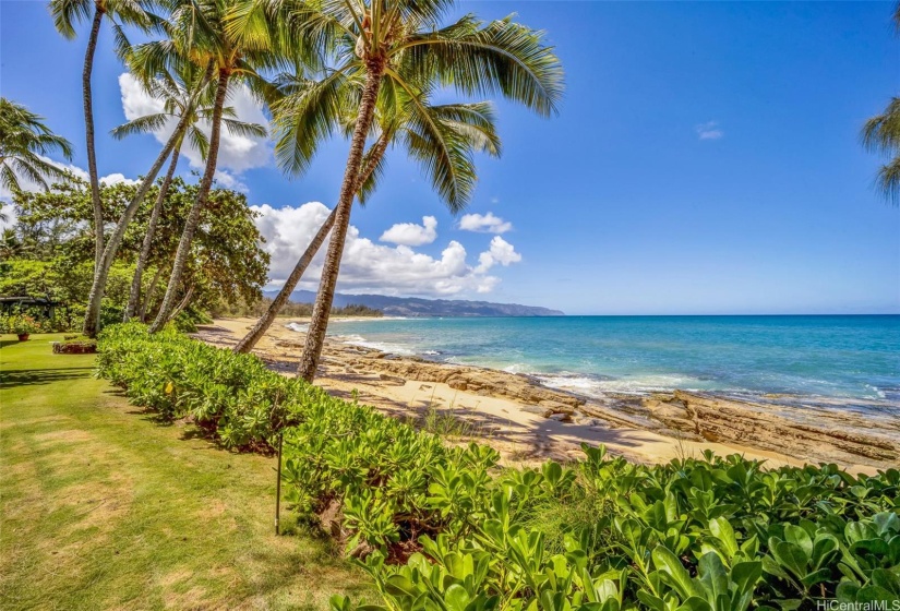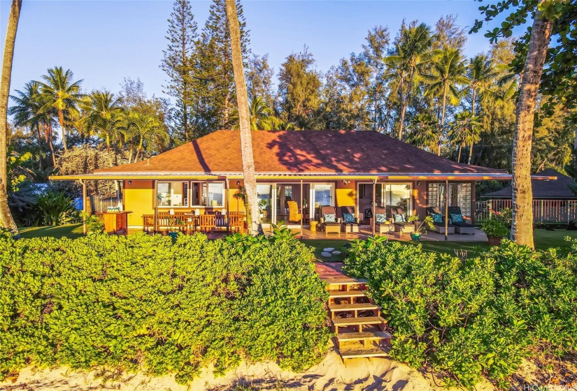 Indulge in the ultimate beach front lifestyle and location. Located just about a mile from bustling Haleiwa Town but in a quiet, private feeling atmosphere. This rare gem is a street to beach property offering close to 20,000 square feet of land in a park like setting that comes with a main house plus a spacious cottage that sleeps 6 comfortably. Close to 130 linear feet of frontage!!! Breathtaking ocean, mountain and year round sunset views. Main house has vaulted ceilings, custom lighting, tons of natural light and sliders that open up to your large covered lanai facing the ocean. What truly sets this property apart though is its significant redevelopment potential. The zoning and lot size allows for significant expansion. Whether you are looking for a tranquil retreat or a lucrative investment opportunity this property on prestigious Papailoa Road is not to be missed.