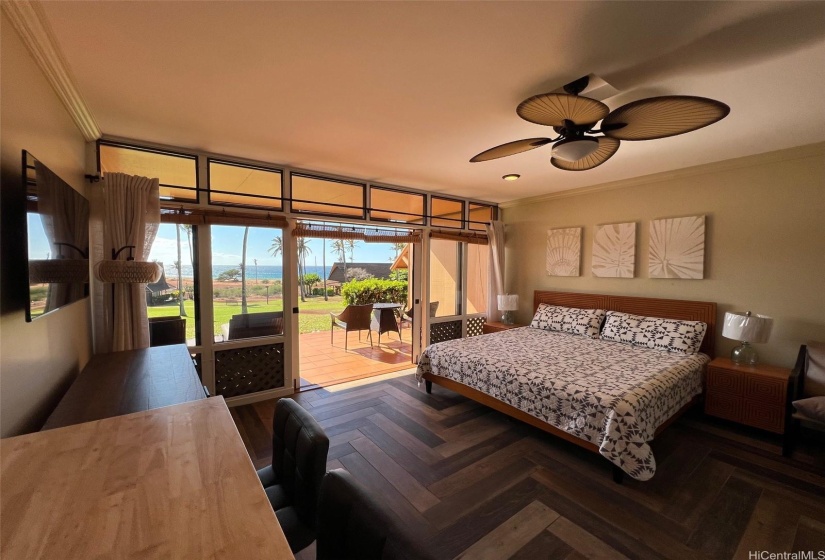 Incredible ocean and sunset views from condo 1162 at the Kepuhi Beach Resort. This Fully Furnished Large ground floor studio is being sold Turn Key with everything inside. This Fully furnished Extra Large studio has exceptional potential as a Legal Vacation Rental when you are not occupying your condo.Building 16 is is a Highly desirable location nestled within KBR’s 11 acres on the western shores of kaluakoi. Relish in the convenience of being just a leisurely stroll away from the pristine shores of Kepuhi Beach directly in front.. Unwind by the spacious oceanfront swimming pool, basking in the warmth of the Hawaiian sun, or savor the breathtaking beauty of vibrant sunsets from the comfort of your private lanai. Molokai presents a rare opportunity to explore untouched beaches and witness an abundance of wildlife in their natural habitat. Molokai Axis Deer and Turkeys free range and help maintain the 11 acres of Property. The courtyard provides BBQ grills and picnic tables, perfect for hosting memorable gatherings with loved ones. Hawaiian Holiday Home Dream? Don’t let this chance slip away – schedule your appointment today to experience the beauty of this exquisite KBR condo.