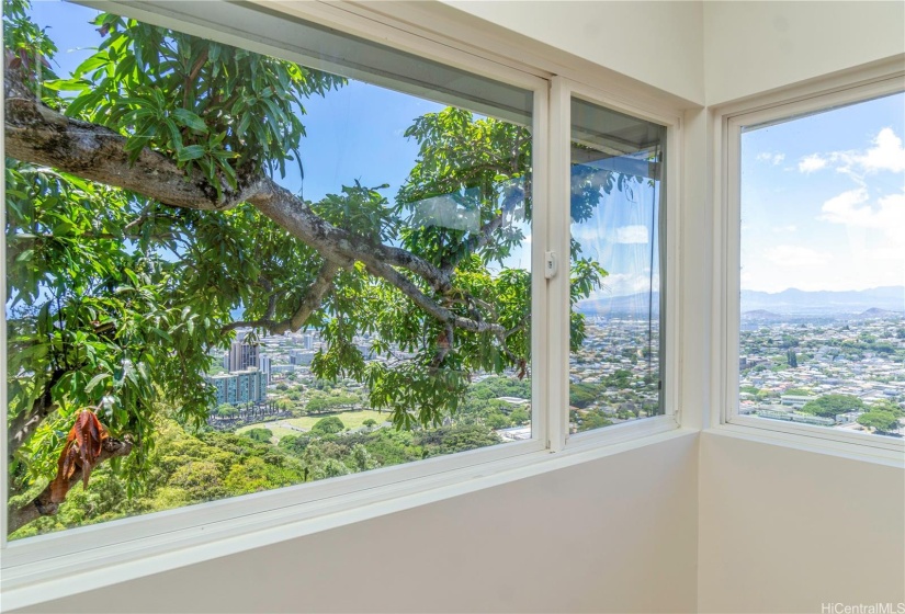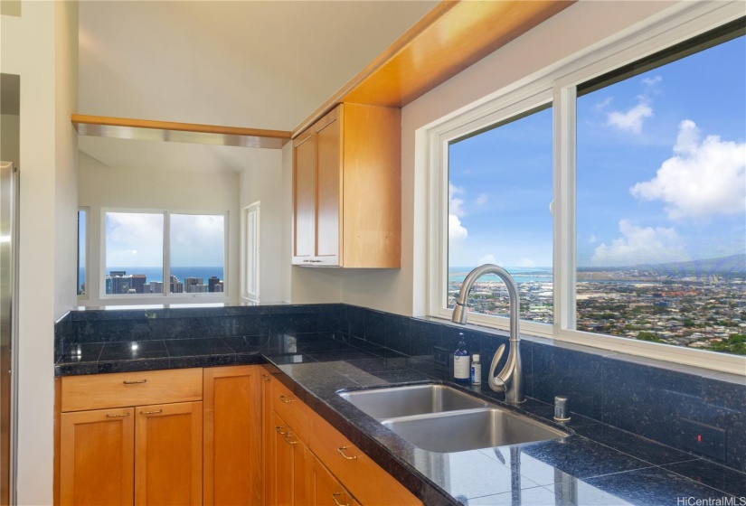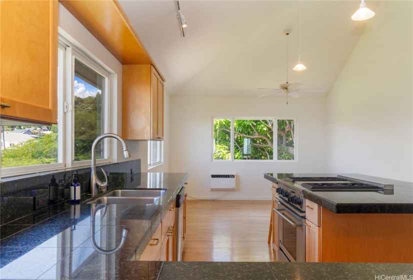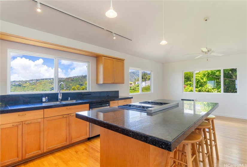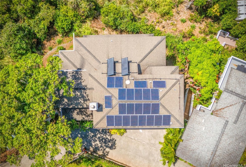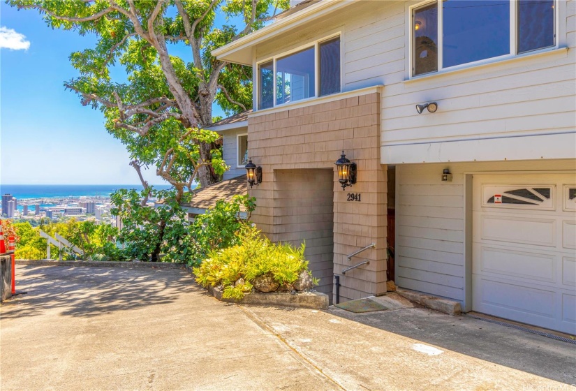 Private and peaceful up Pacific Heights! This rim lot takes full advantage of open, must-see views from town to the west. The steel-framed, custom home has unobstructed views from almost every room. The 300 square foot lanai gives you front row seats to spectacular sunsets happening nightly. So quiet you will hear birdsong! 23 owned PV panels and solar hot water heater. New ACs: 1 split in living, 3 wall AC’s in nook and downstairs bedrooms. The primary suite is very private upstairs and includes a spacious bath suite, plus a separate den or 4th bedroom. Downstairs has 2 bedrooms, 2 full bathrooms, and the laundry. Hardwood floors throughout the most of the living areas. Large 2-car garage has extra storage. Additional storage in the kitchen, dining room, a very large pantry off the downstairs, another large closet under the stairs. Check out the 3D virtual tour and professional video of this very special home. Please DO NOT DRIVE IN or step foot on property without an appointment. Some photos have been virtually enhanced.