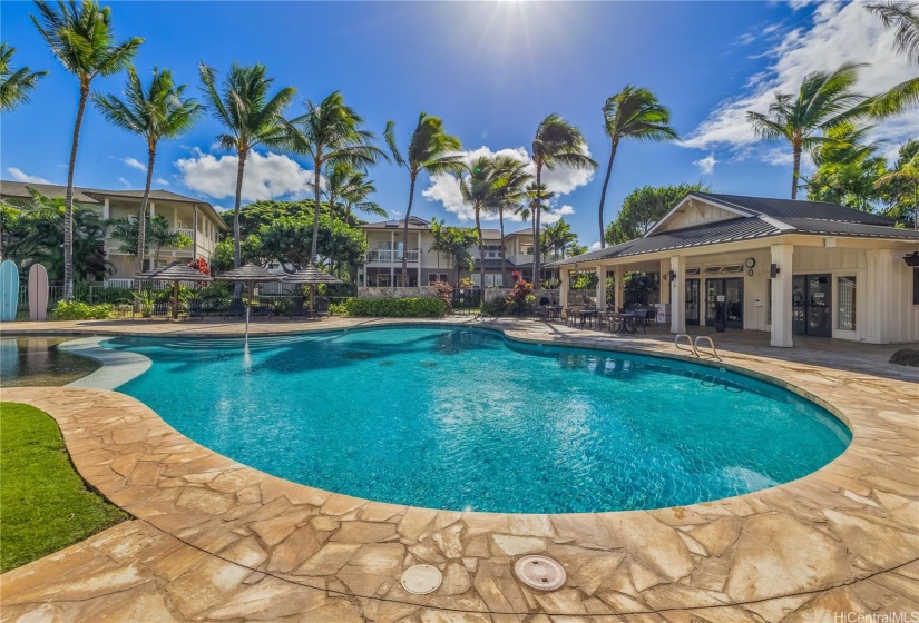 A Must See! Welcome to the serene enclave of Coconut Plantation at Ko Olina, aptly named “A Place of Joy.” As you step into this special 3 bedroom, 3 bath residence, you are enveloped by a tranquil resort ambiance, accentuated by the radiant Hawaiian sun and a lush tropical landscape. The spacious residence unfolds over two well-appointed levels, offering a seamless and inviting flow throughout the space. The charming first floor lanai presents a picturesque view of the 13th hole on the pristine Ko Olina Golf Course, with the course’s boundary graciously approaching your private outdoor space. There is roomy walk-in closet space, and relaxing covered lanai spaces on both floors. The enclosed 2-car garage is a perfect feature for this perfect residence. Just around the corner awaits a charming, adjoining 2 bedroom, 2 bath with den, unit 55-2 (MLS 202421533), which is also for sale. Both townhouses are vacant, being sold “As Is”, easy to show, and a must see! A mere stone’s throw away, you’ll find exquisite beach lagoons, the enchanting Disney Aulani Resort, a selection of delectable dining options, and a renowned luau experience–all within an easy, leisurely stroll.