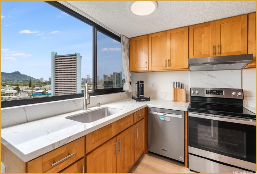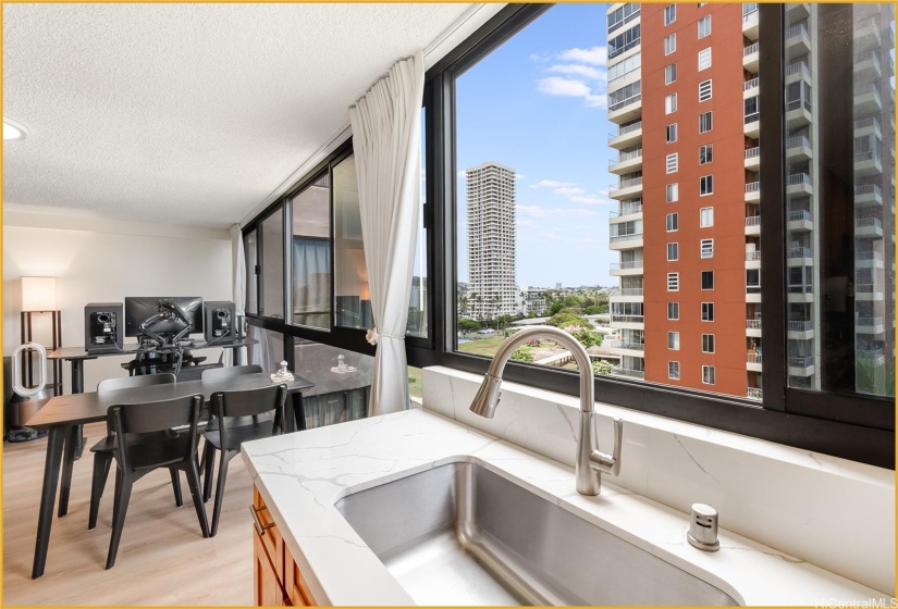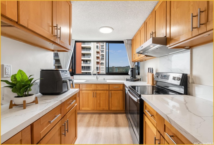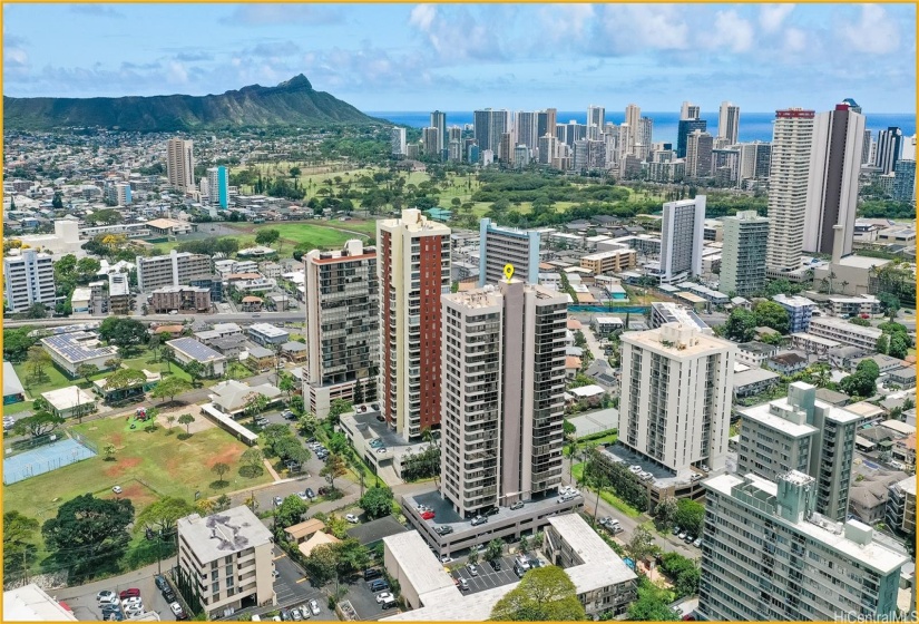 ASSUMABLE LOAN – DIAMOND HEAD VIEWS – BREEZY AND OPEN FLOOR PLAN: As you step into this bright and pristine 2-bedroom, 2-bathroom corner unit in the popular Kings Gate, you’re greeted with stunning direct views of Diamond Head and Tradewind breezes coming through the whole home.. Enjoy the convenience of a covered, secured parking space on the lower level. Amenities include a pool, sauna, hot tub, BBQ areas, and a spacious lobby. The location is convenient to downtown, the freeway, shopping, and schools.