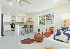 Welcome to Mahi Ko at Waikele! This stunning 2-bedroom, 1-bath townhome has been completely upgraded from top to bottom, offering modern, high-quality finishes throughout. The kitchen features brand-new quartz countertops, shaker-style cabinets, and stainless steel appliances.