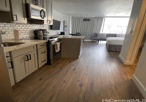 Discover your ideal island retreat in this beautiful 815 sq. ft. condo at Honolulu Tower! This updated unit features a stunning kitchen with gorgeous quartz countertops, modern cabinetry, a huge stainless steel sink, new ceramic tile floors, and high-end appliances, perfect for culinary enthusiasts.